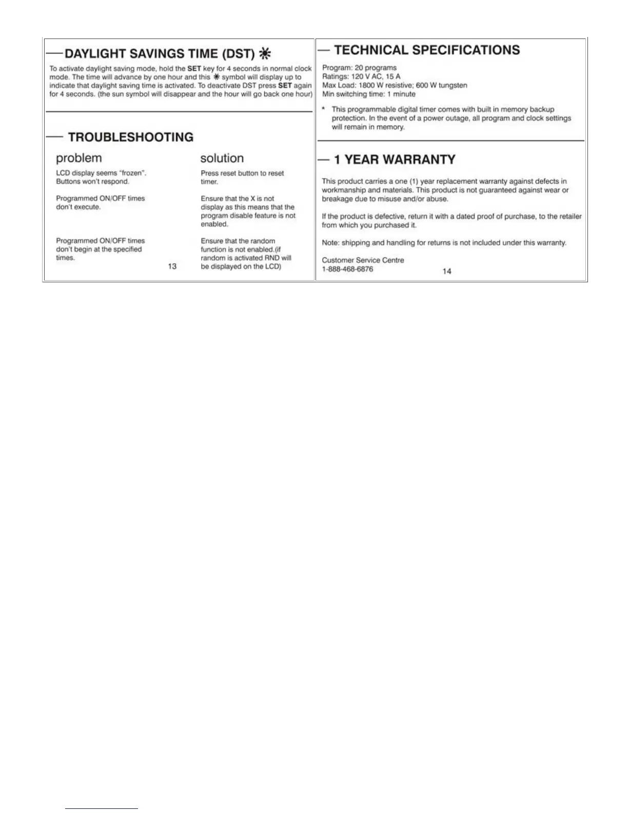 UPM ET525 - System Settings, Support, and Specifications; Daylight Savings Time (DST); Troubleshooting Common Issues; Technical Specifications