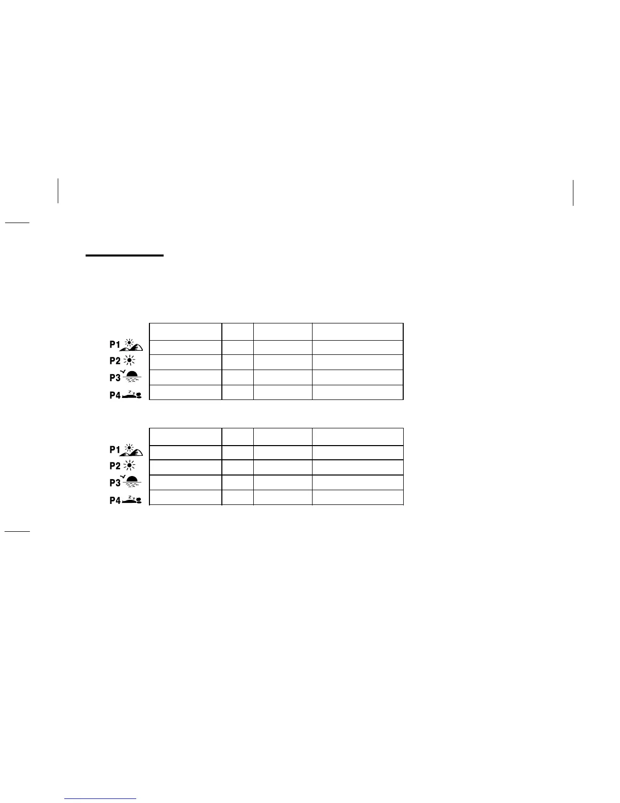 The program periods (P1,P2, P3, P4) allow you to set the temperature settings and start times