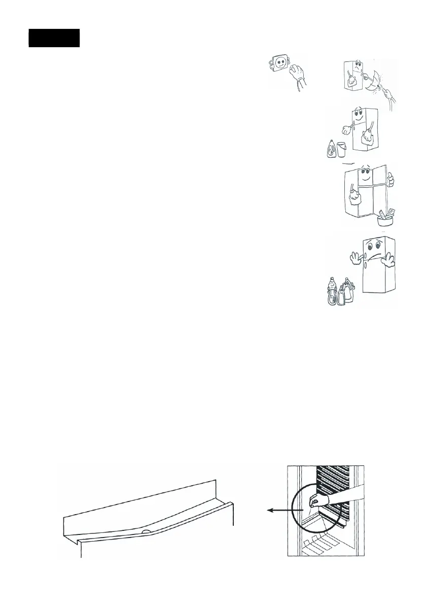 • Avdunstningskärlet och dräneringshålet för smältvattnet bör rengöras regelbundet