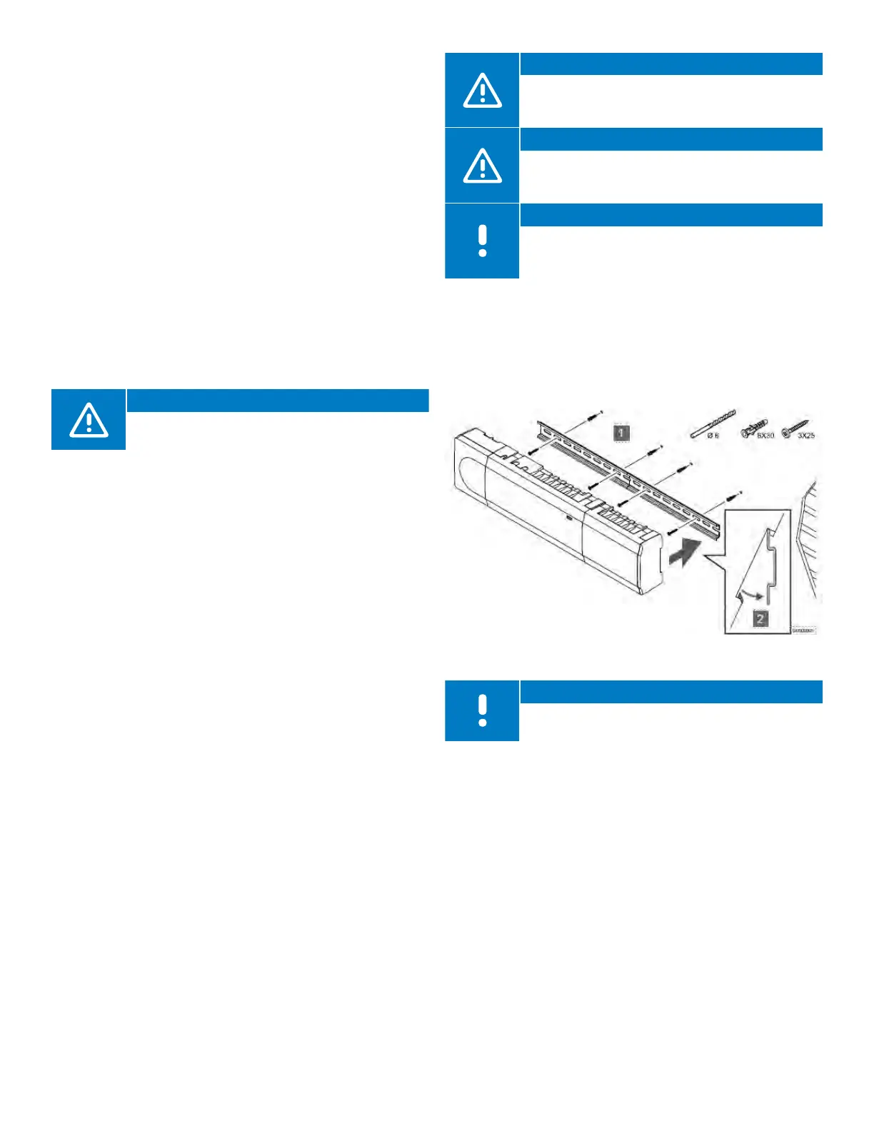 • Install the DIN rail onto the wall surface using the