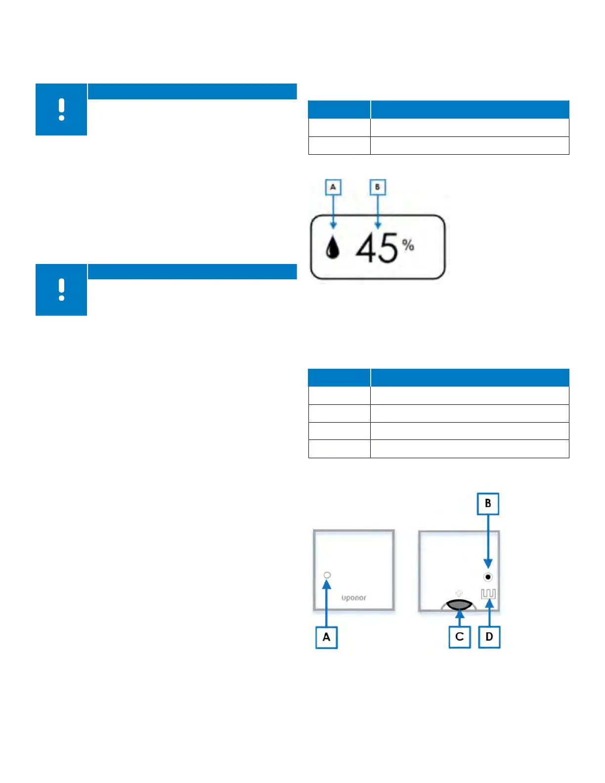 Table 9-10: Relative humidity displays