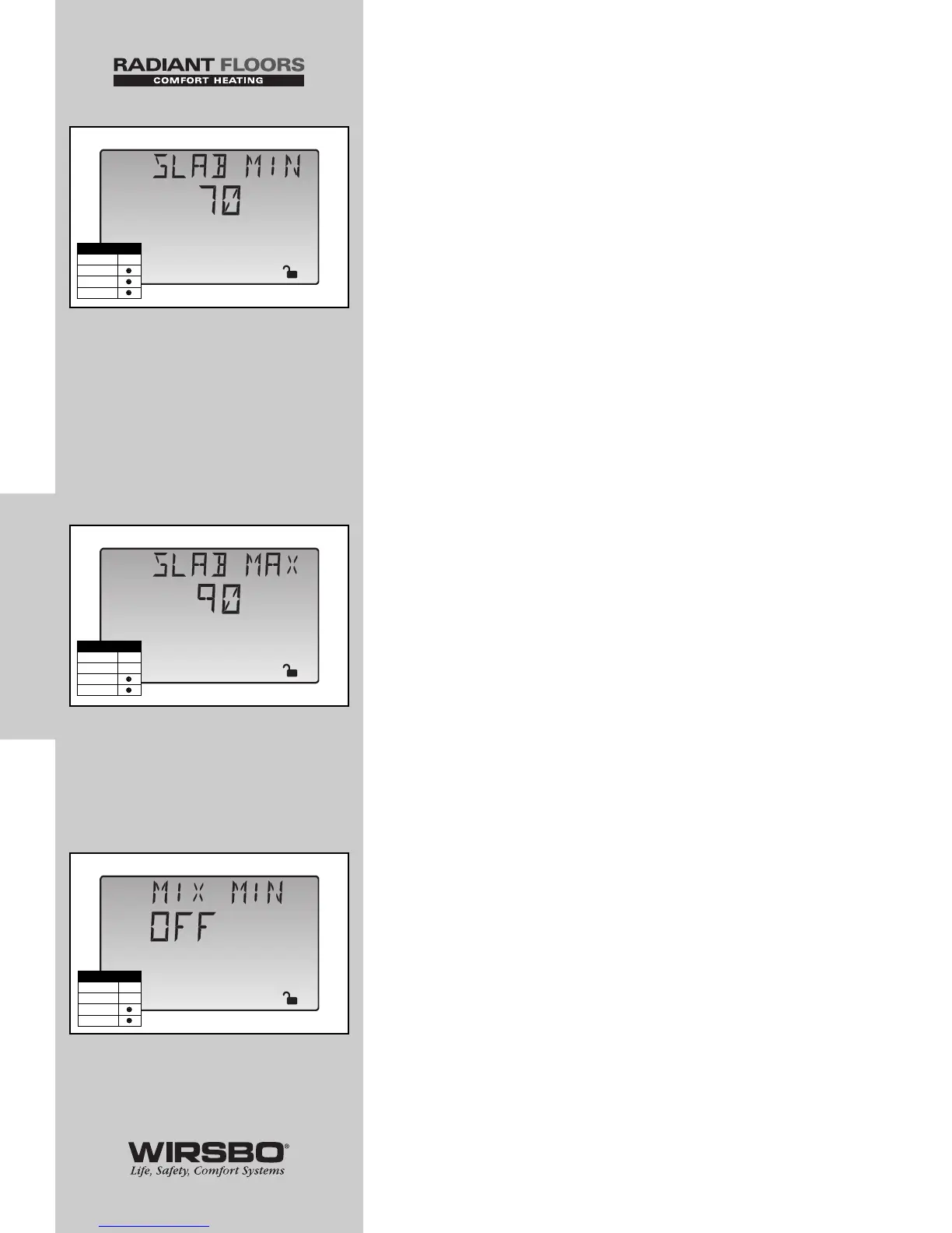 NOTE: The SLAB MIN and the SLAB MAX screens