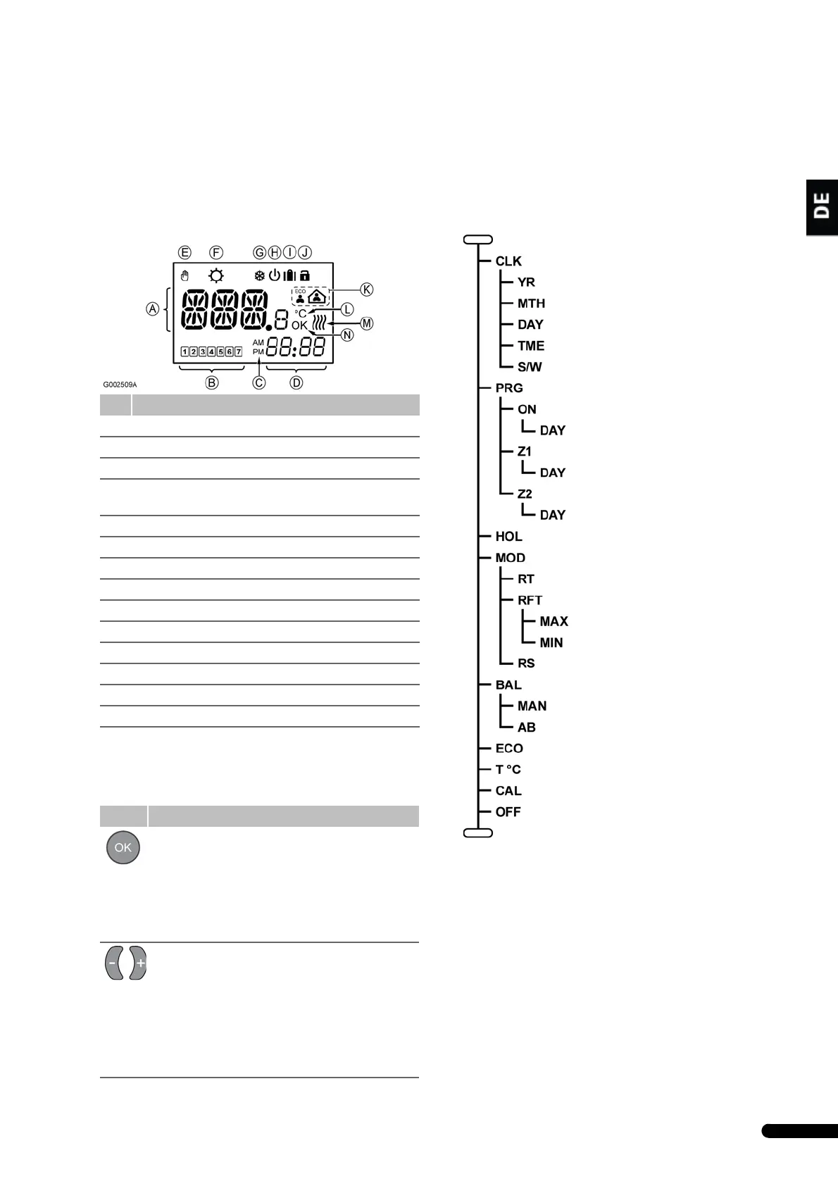 B (gilt nur für T-38 und I-36) Wochentaganzeige