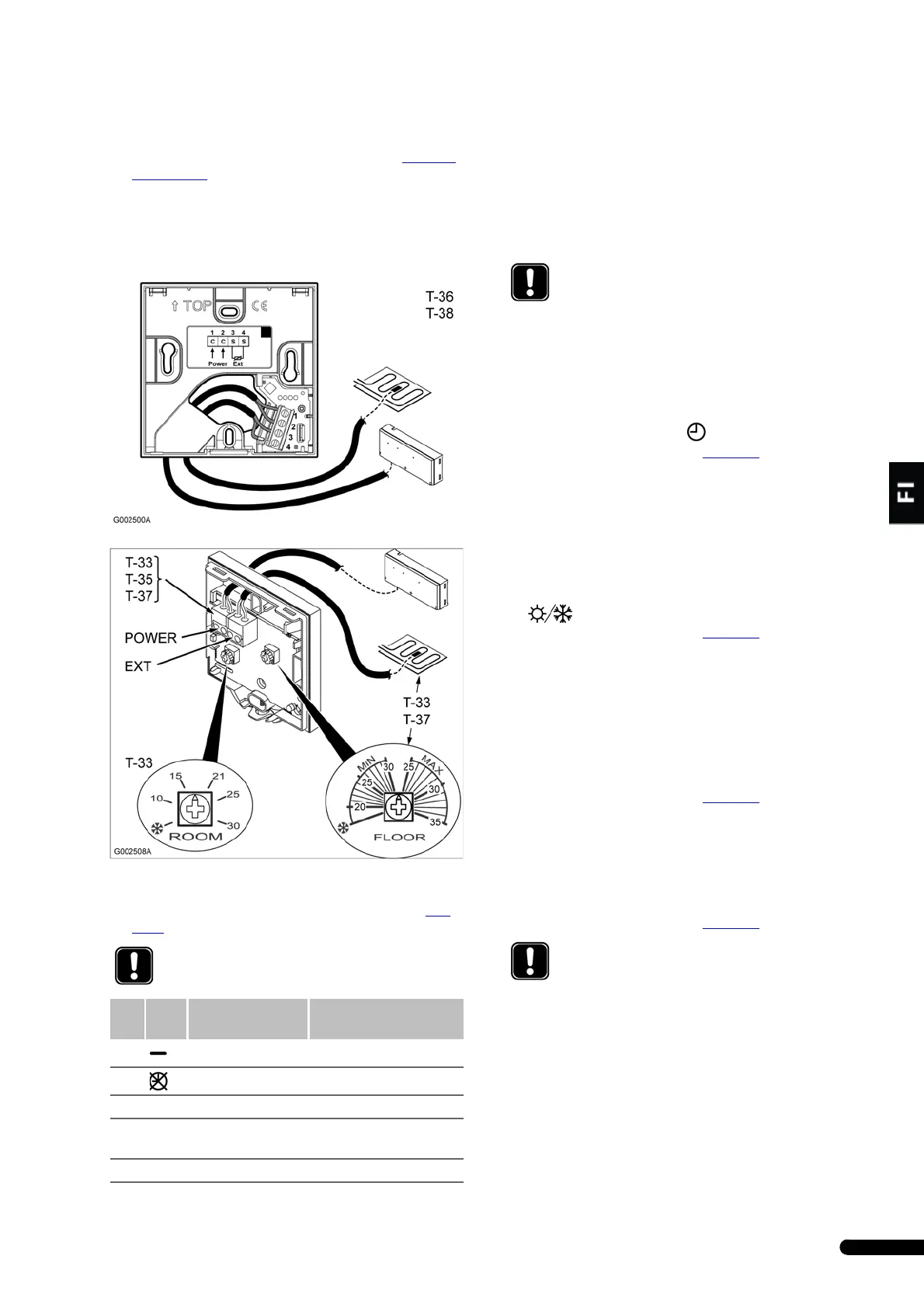 4. Jos järjestelmässä käytetään lattia-anturia tai etäanturia, sen
