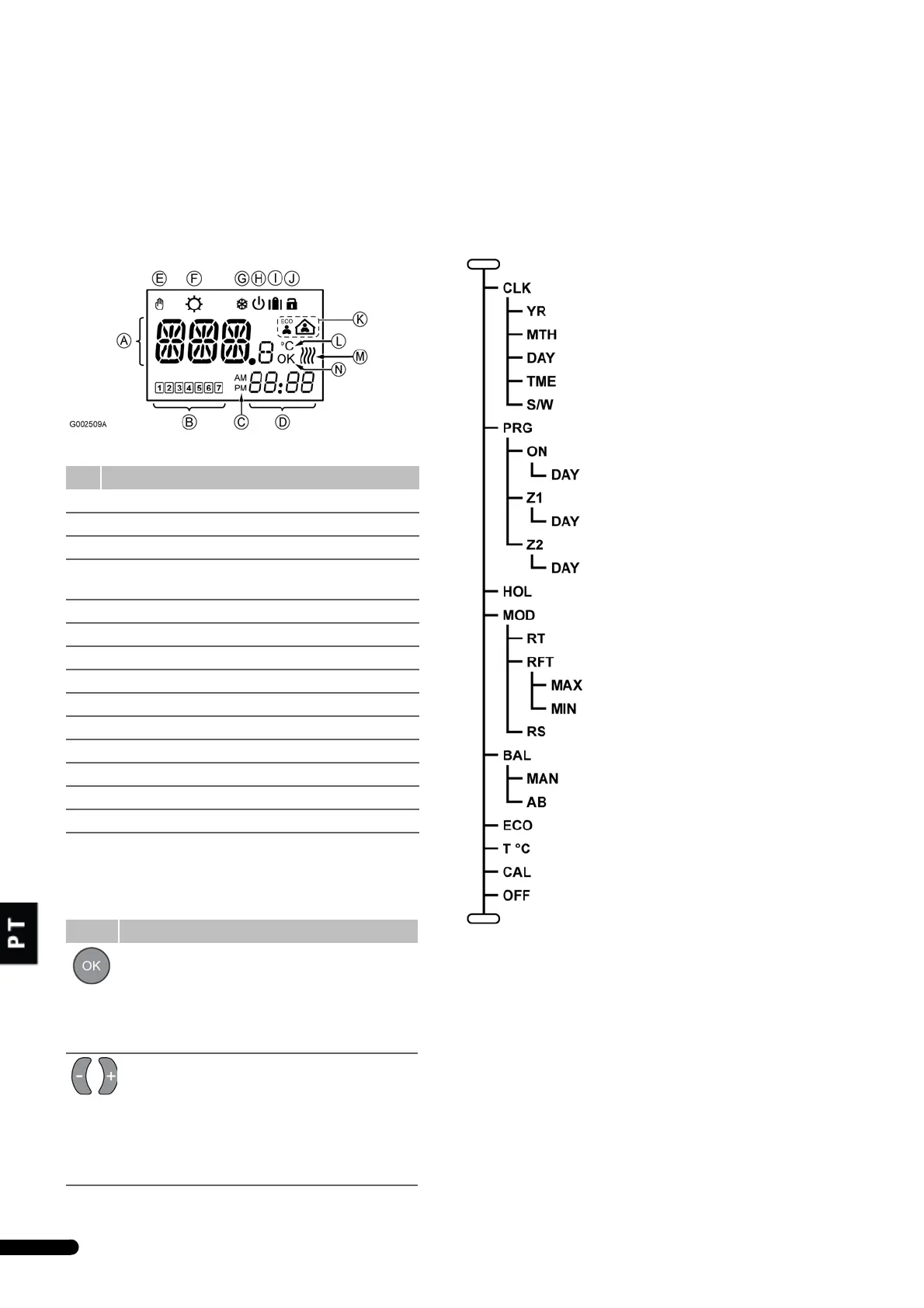 Utiliza-se o menu do ecrã abaixo nos Uponor Termóstatos T-36