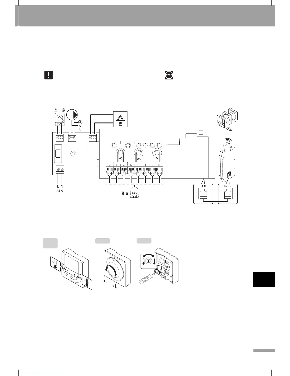 Instruções de funcionamento do termóstato e interface