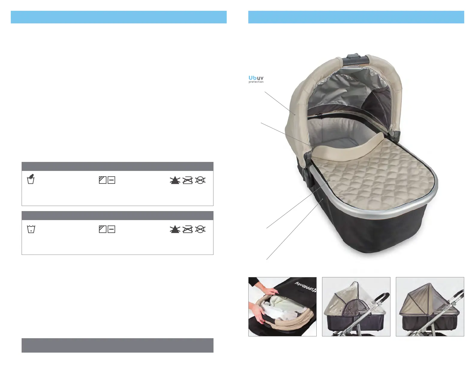 • To extend the life of your carrycot fabric, keep it clean and do not leave it in direct sunlight