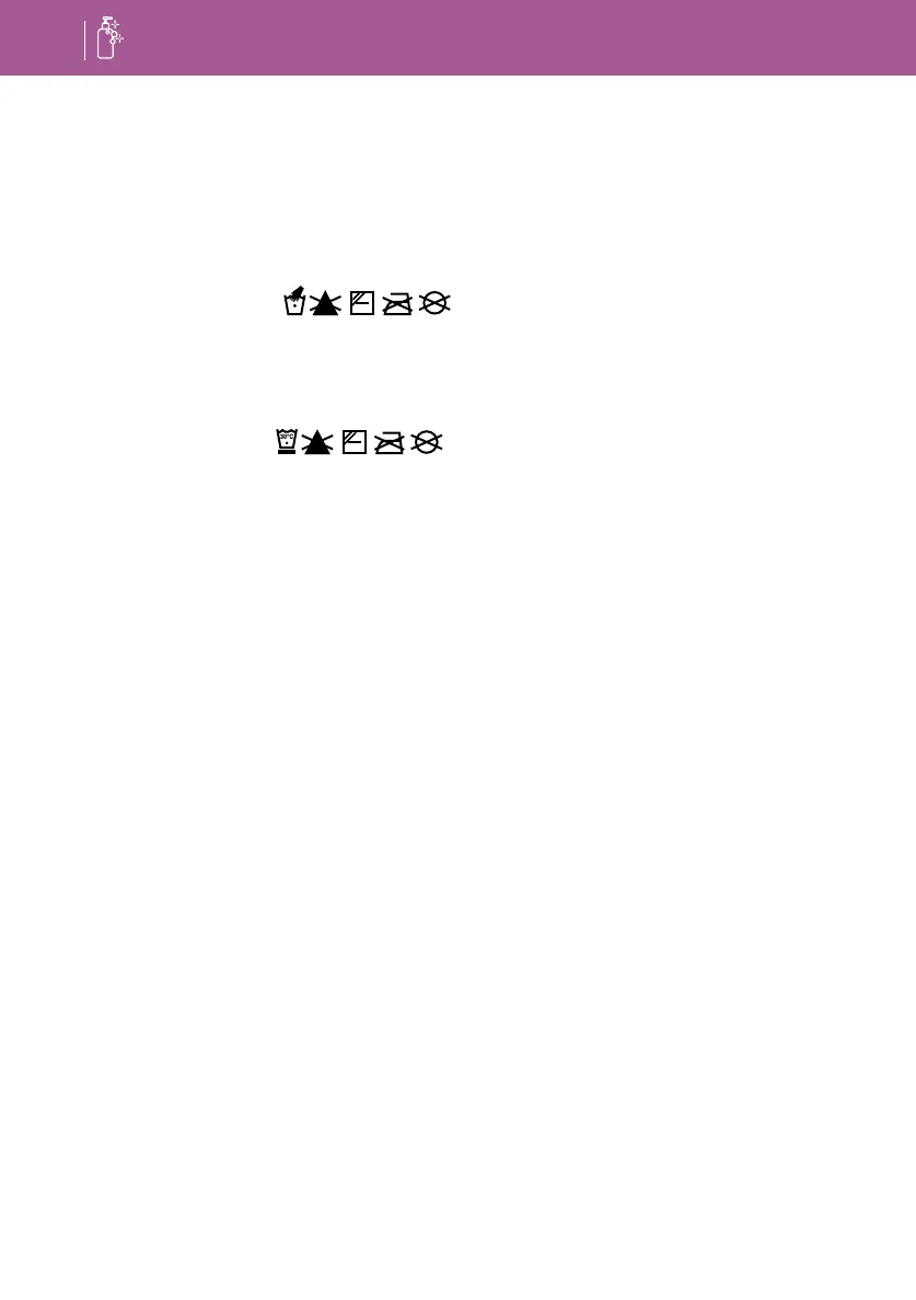 Limpeza de manchas ou lavagem à mão em água fria com detergente neutro. NÃO use alvejante.