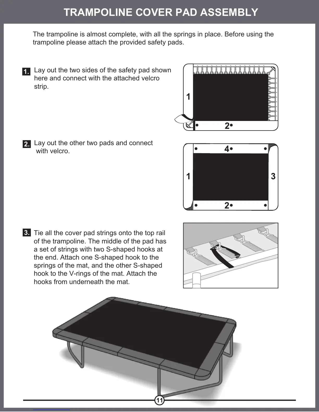 trampoline please attach the provided safety pads.