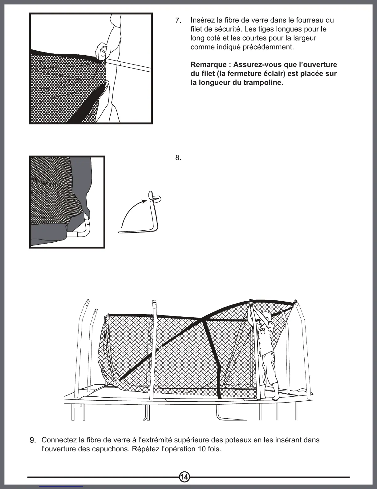 Connectez la fibre de verre à l’extrémité supérieure des poteaux en les insérant dans