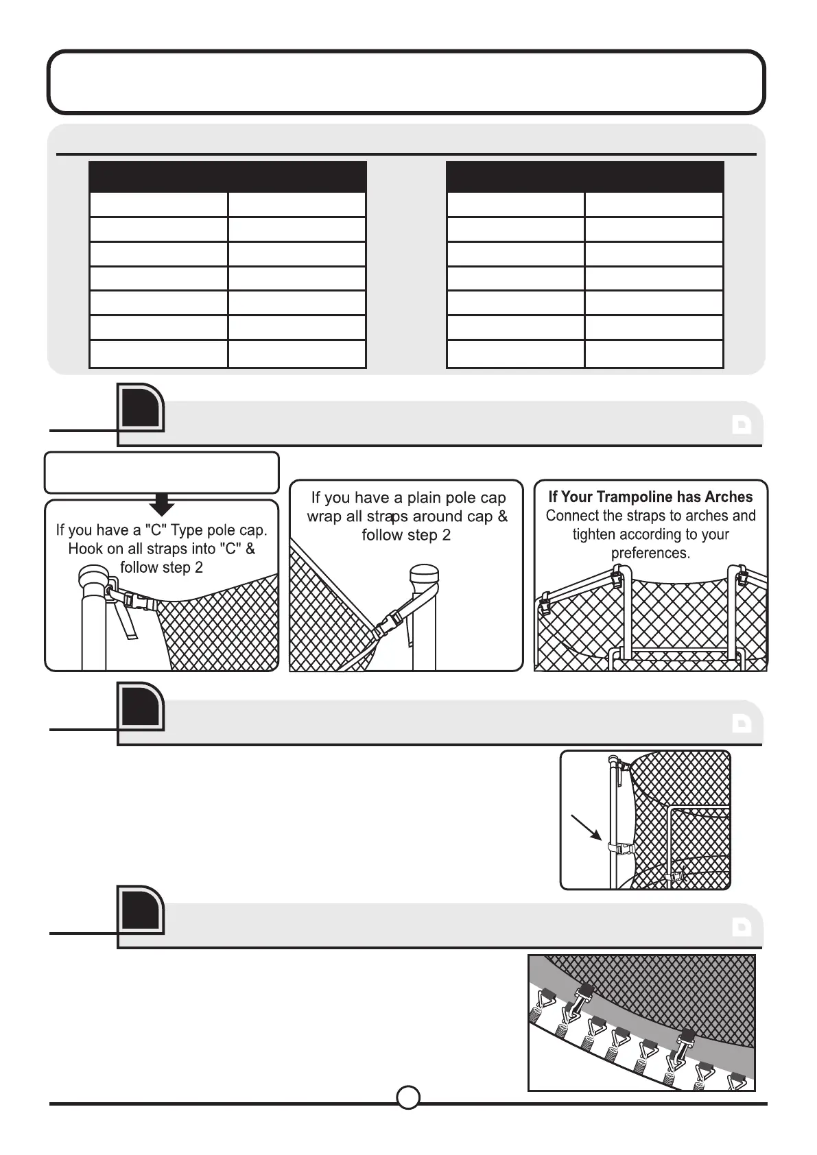 Connect bottom straps/clips to every few jumping mat