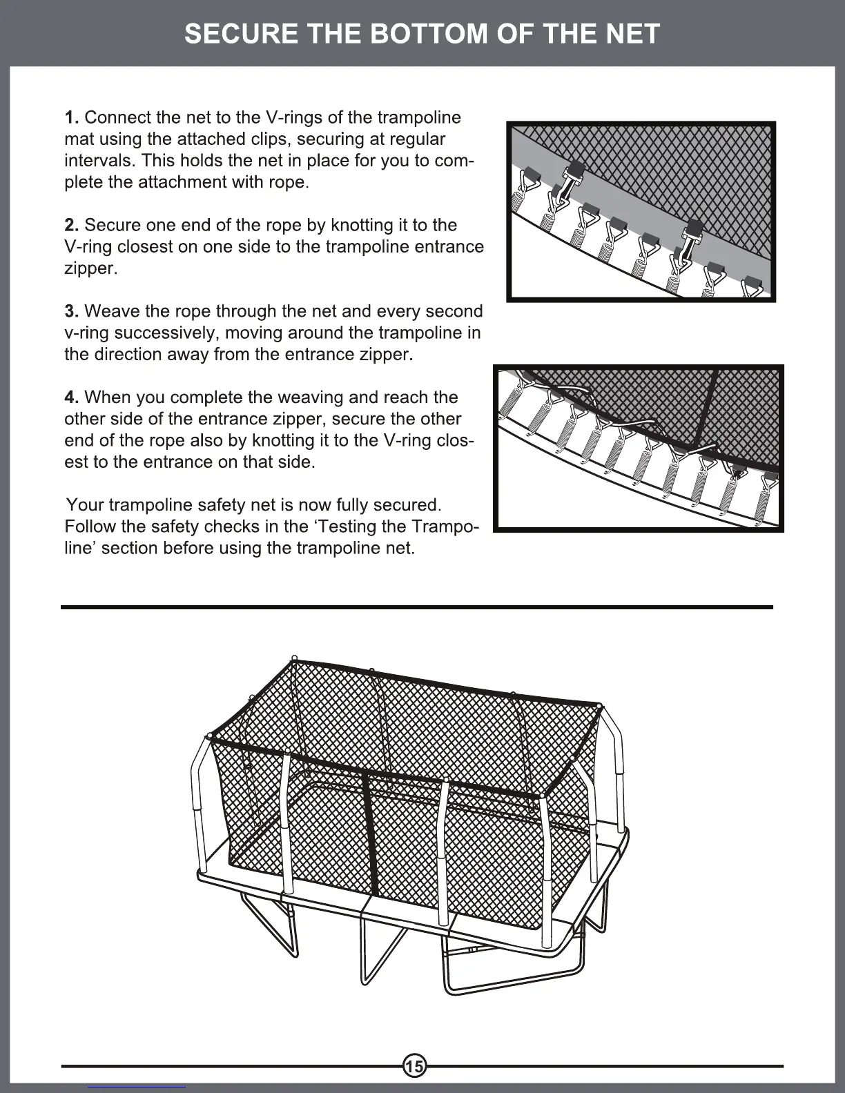 Upper Bounce UBRTG01-1017 - Secure the Bottom of the Net; Attaching Net to Mat and Securing with Rope