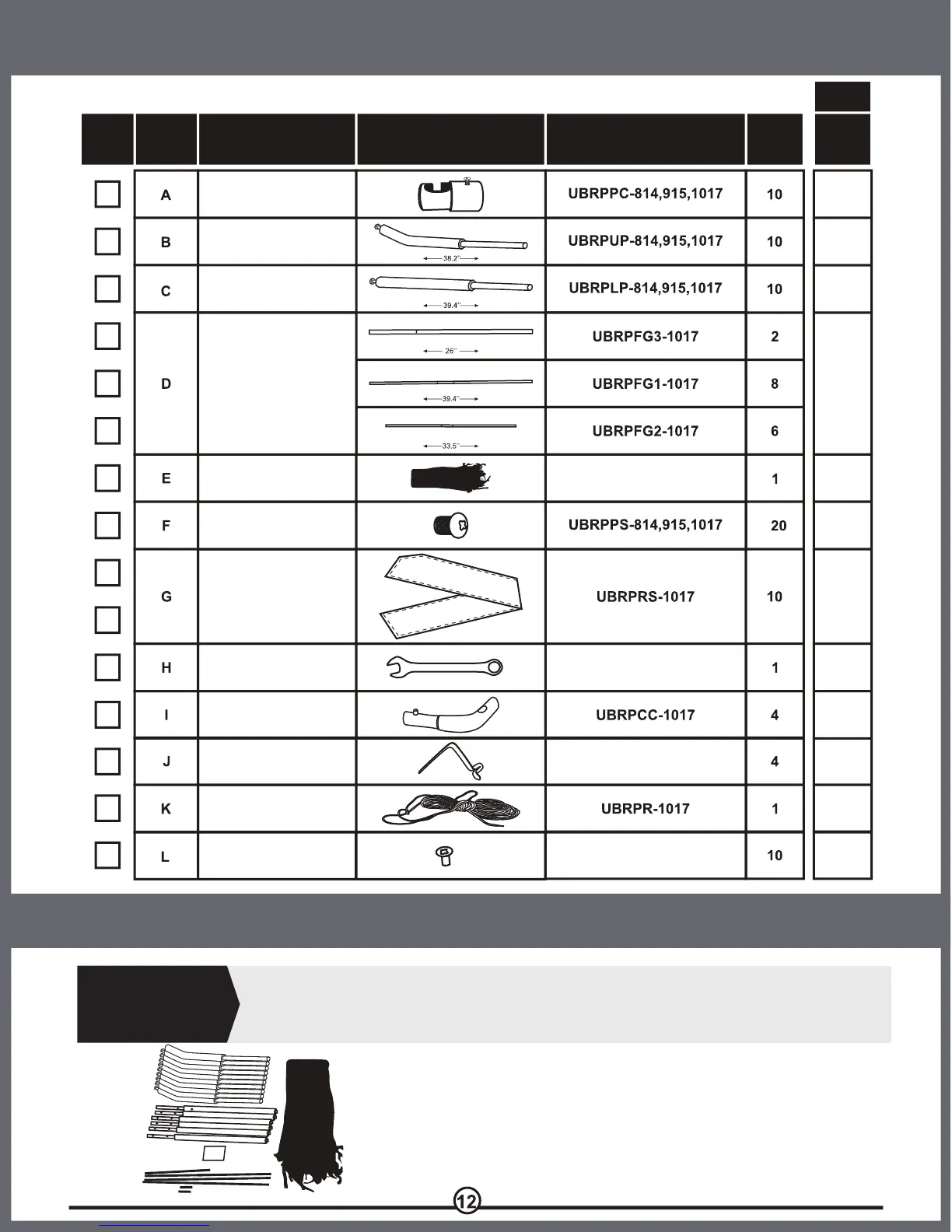 ARTICLE DESCRIPTION IMAGE DE LA PIECE MODELE QTY QTY