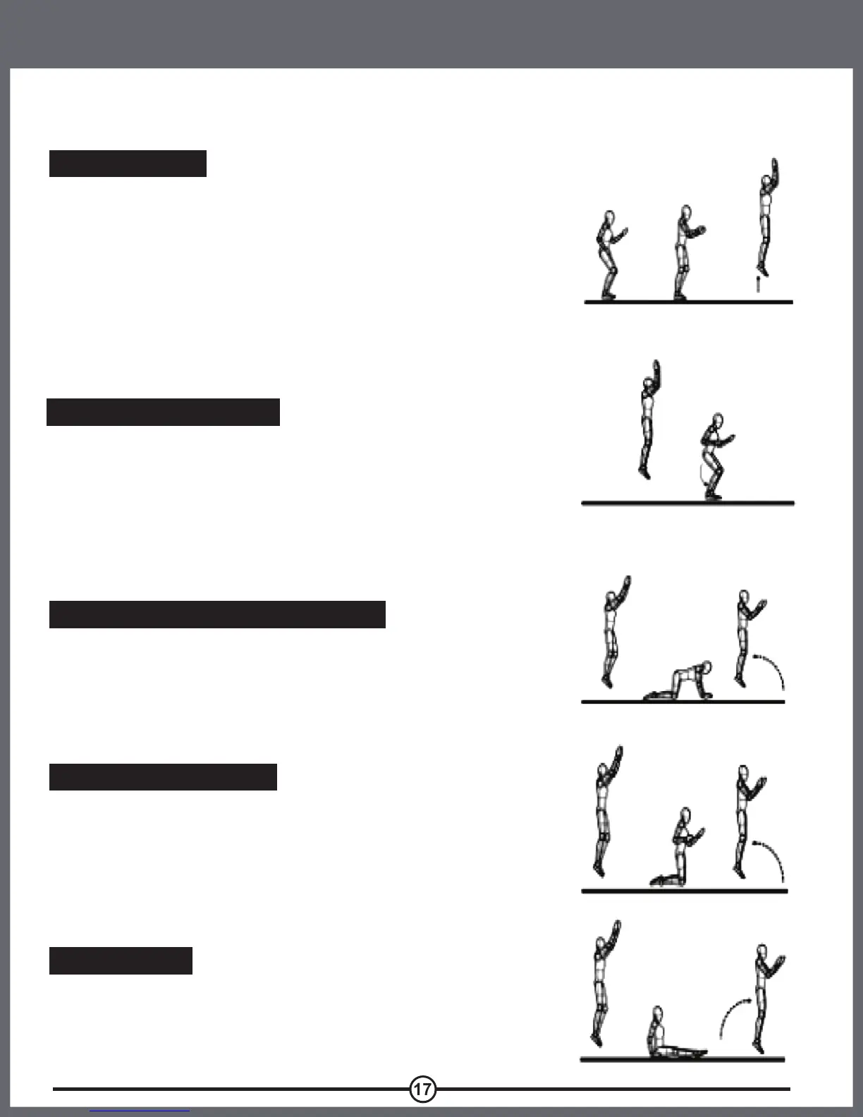 les sauts de base. Faites des exercices jusqu’à la maitrise totale des sauts.