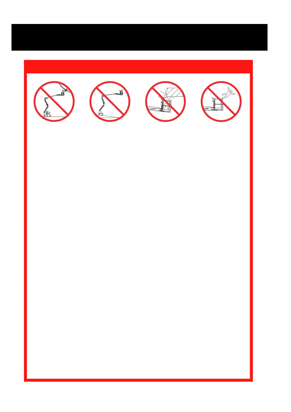 NEVER use ladders, scaffolding, or other items to gain height; work only from the platform floor.