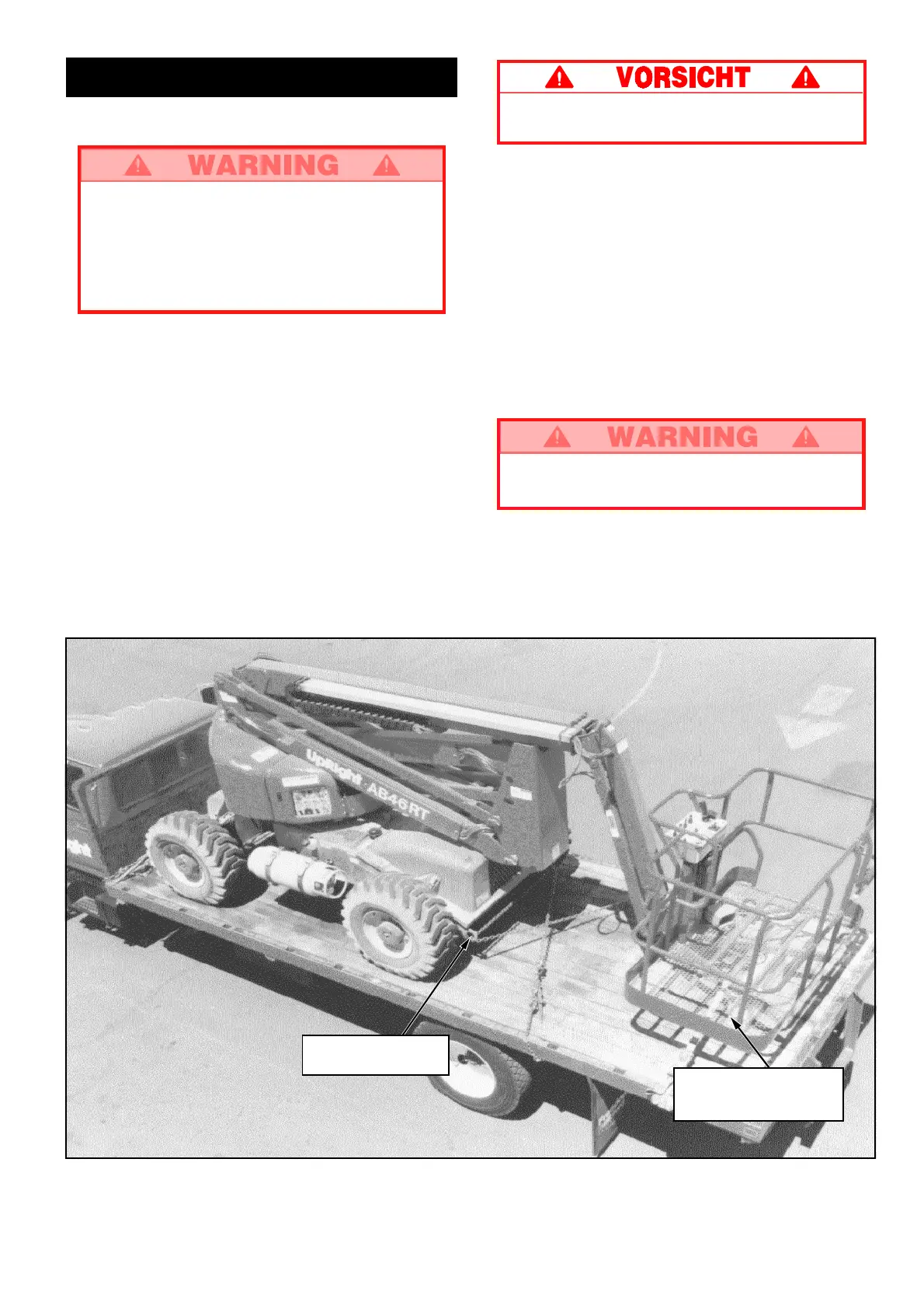 am Transportfahrzeug sichern. Ketten bzw. Gurte an