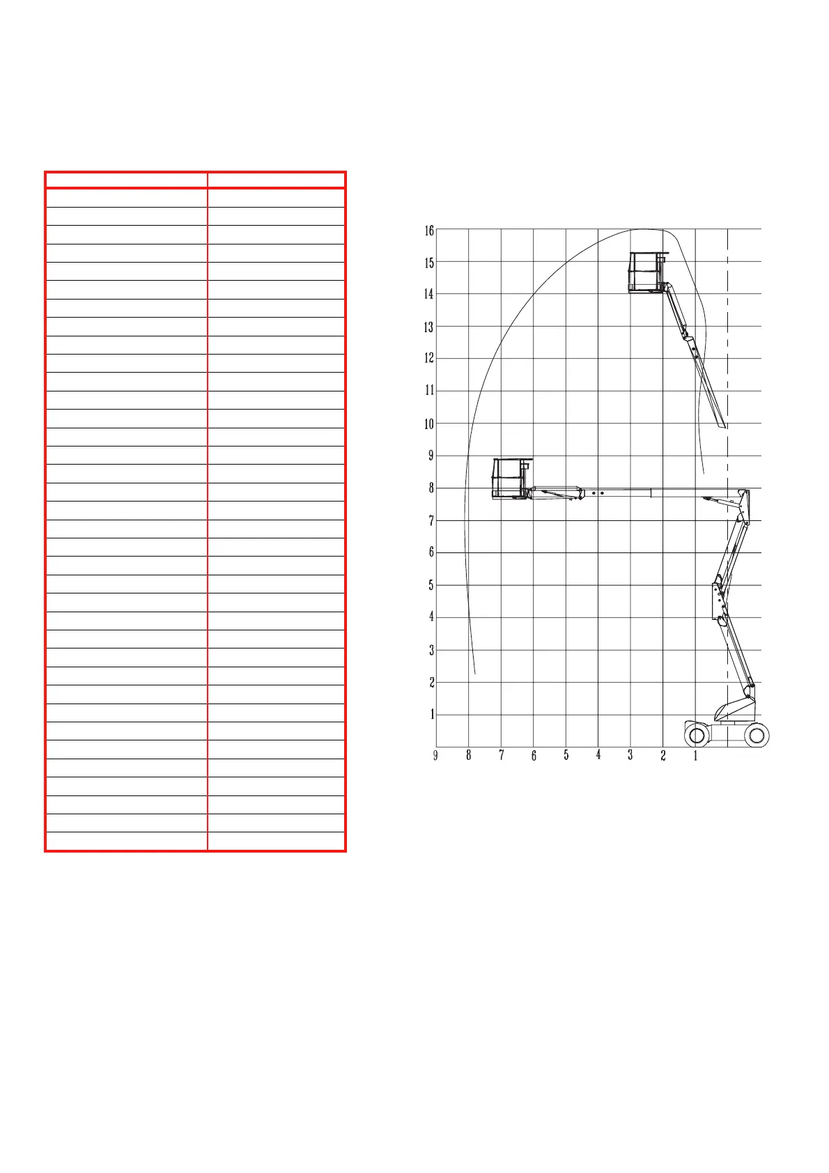 Max. Arbeitshöhe 16,1 m (52 Fuß, 10 Zoll)