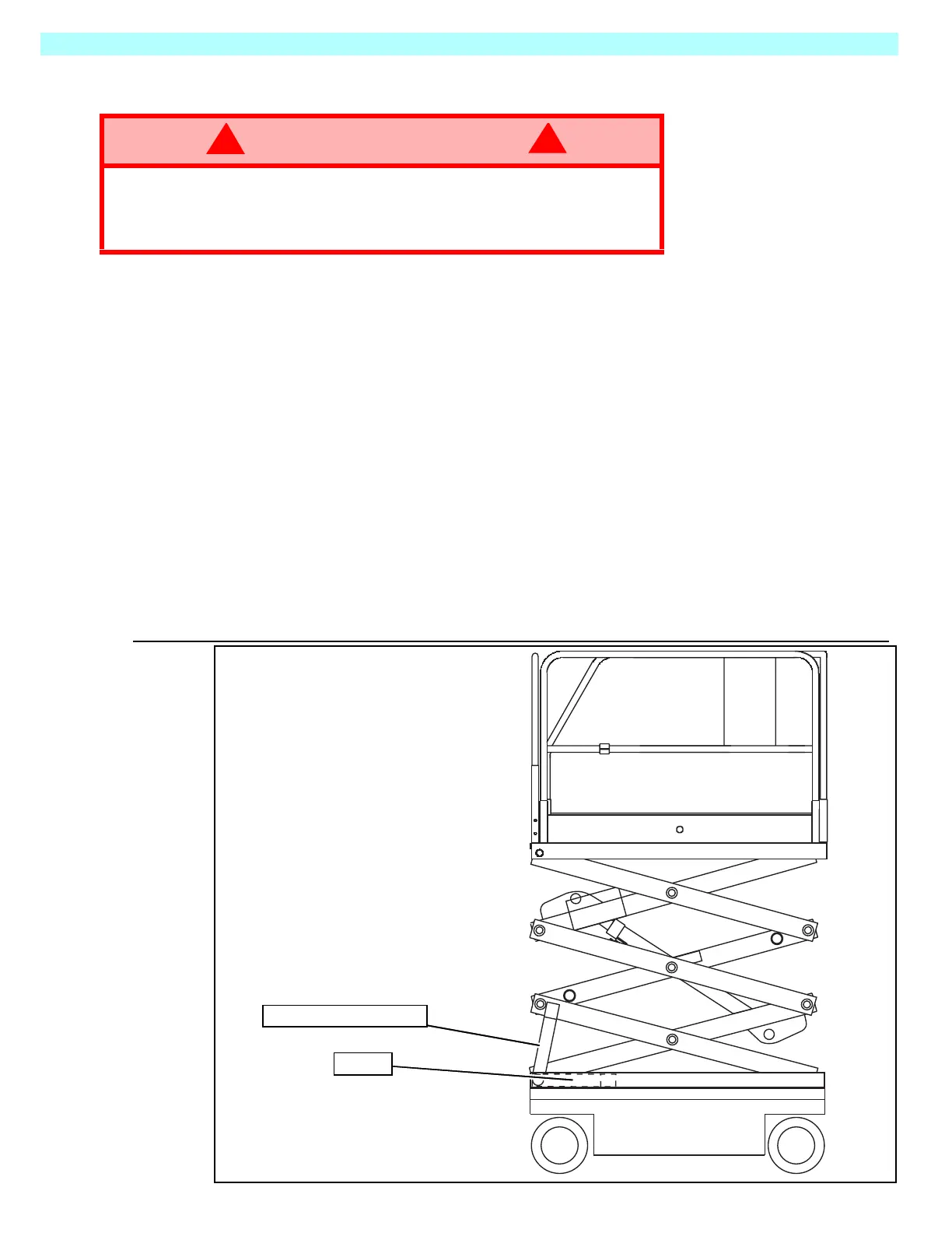 NEVER perform service in the elevating assembly area while the platform is