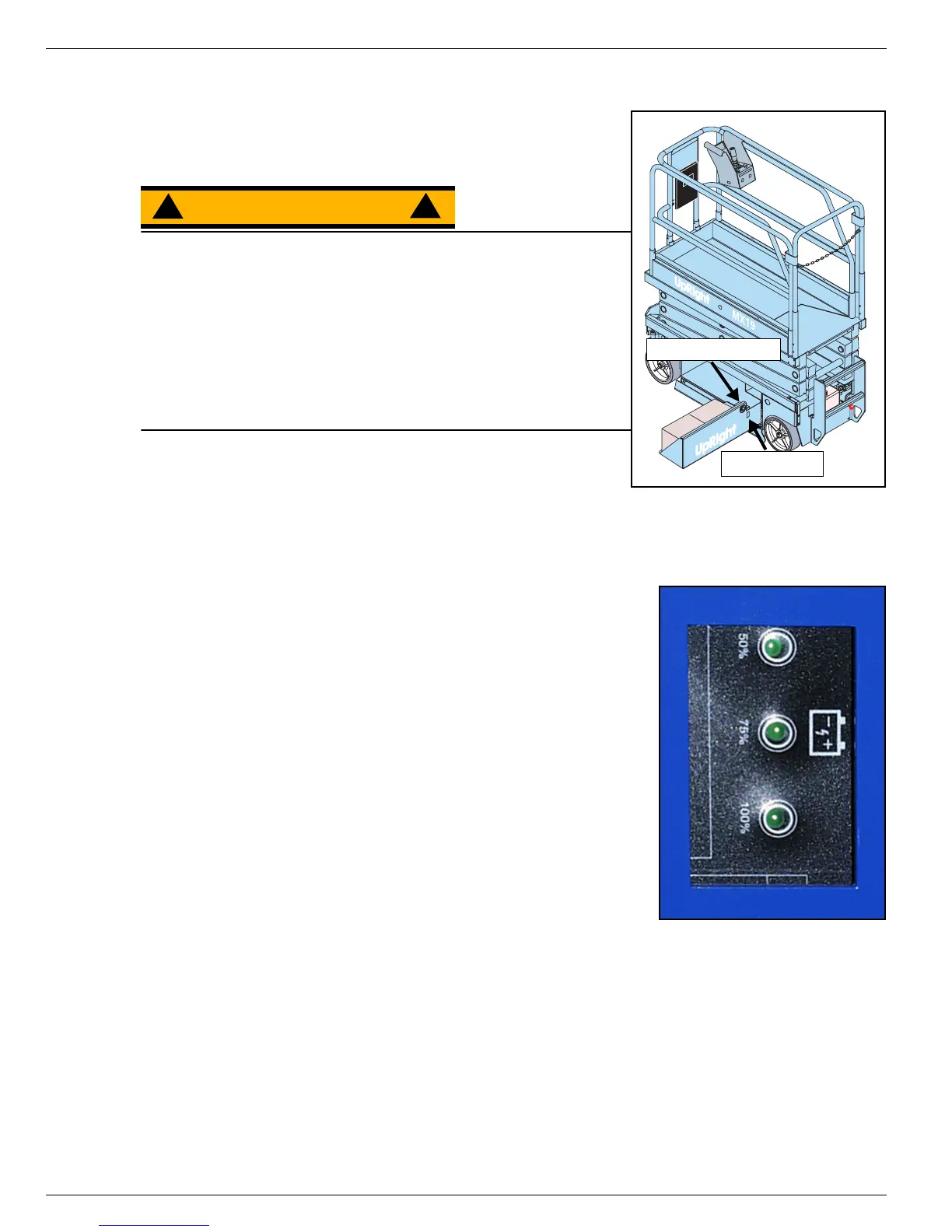 Charge the batteries at the end of each work shift or sooner if the