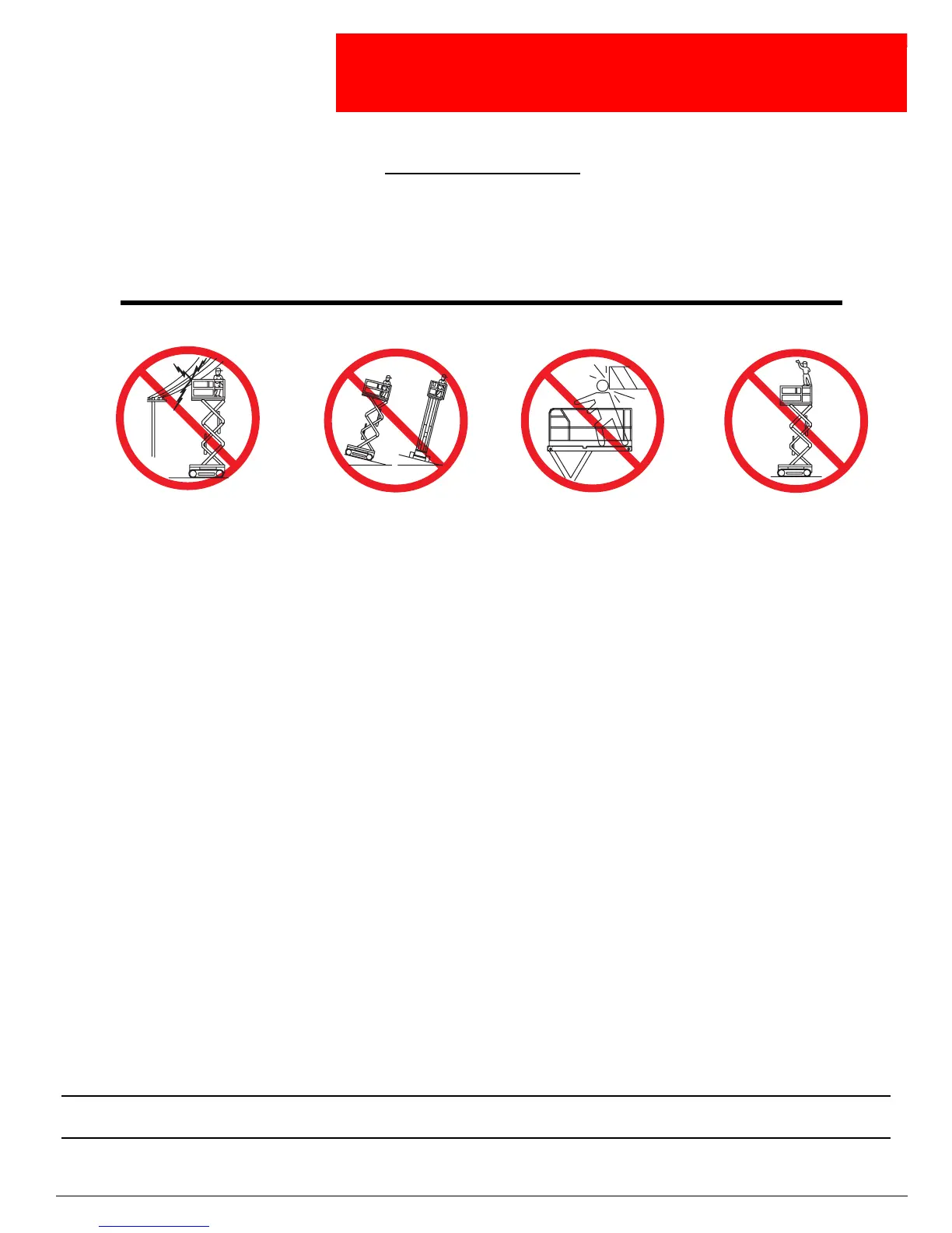 • NEVER perform service on the machine while the platform is elevated without blocking the elevating assembly.
