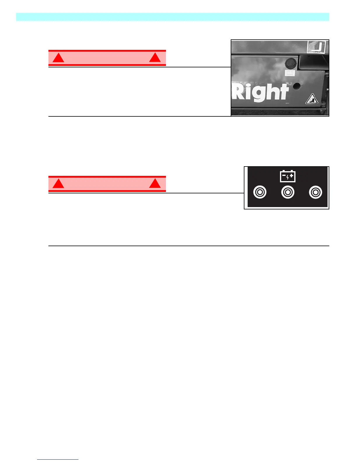 • Check the battery fluid level daily, especially if the machine is being used in a warm, dry climate.
