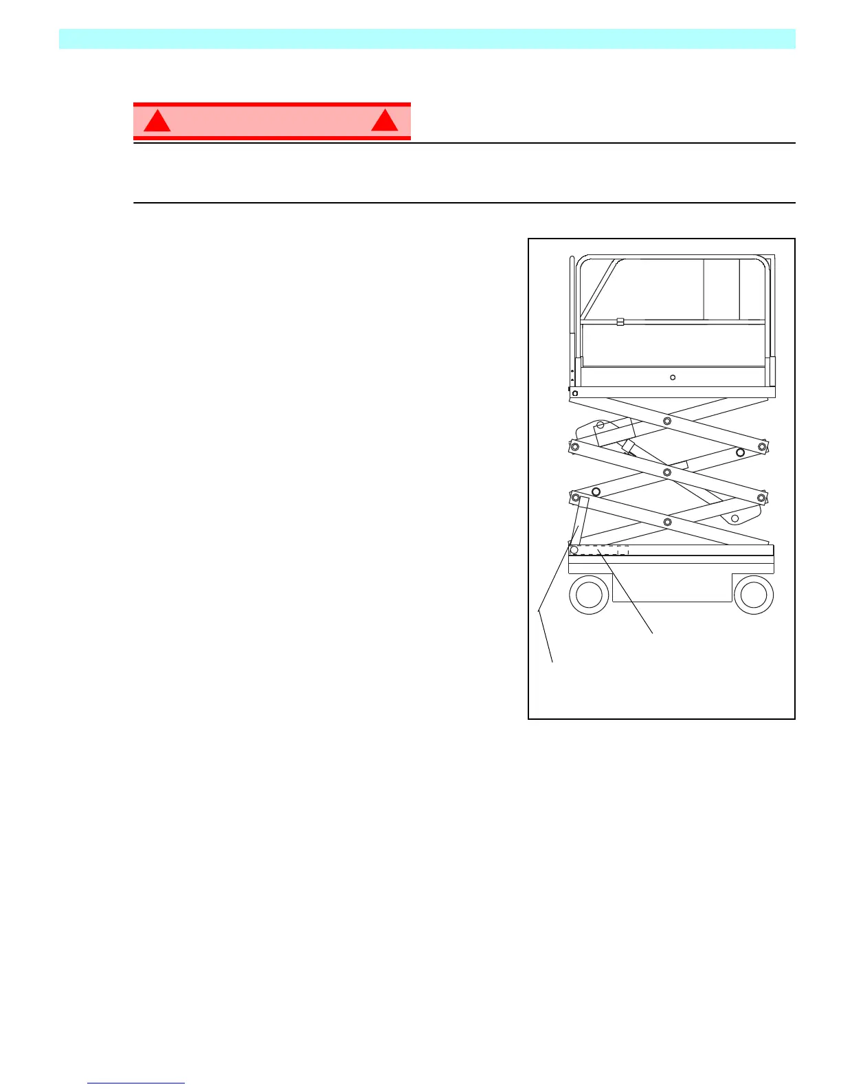 Never perform service on the work platform in the elevating assembly area while platform is elevated