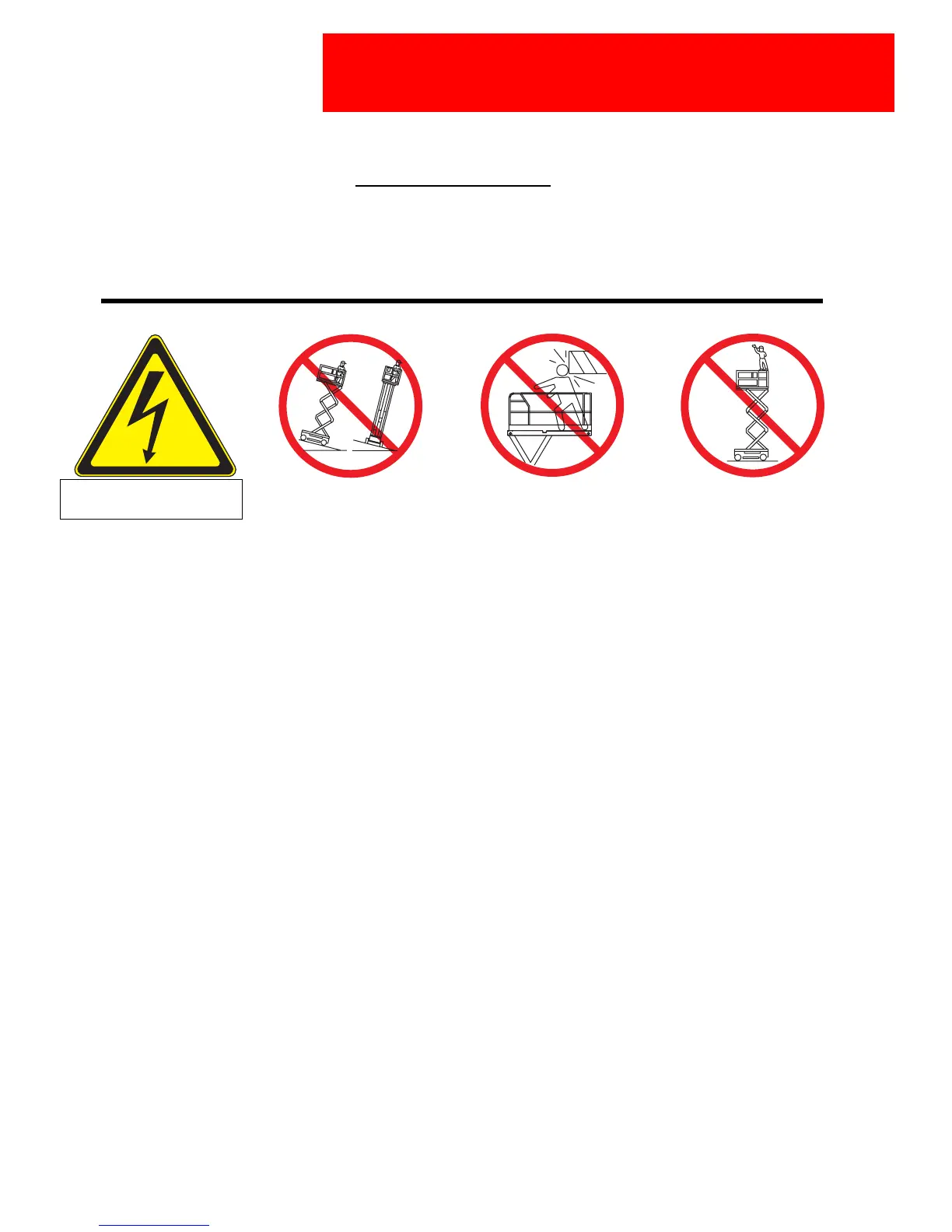 THIS AERIAL WORK PLATFORM IS NOT INSULATED! For this reason it is imperative to keep a safe distance from live parts of electrical