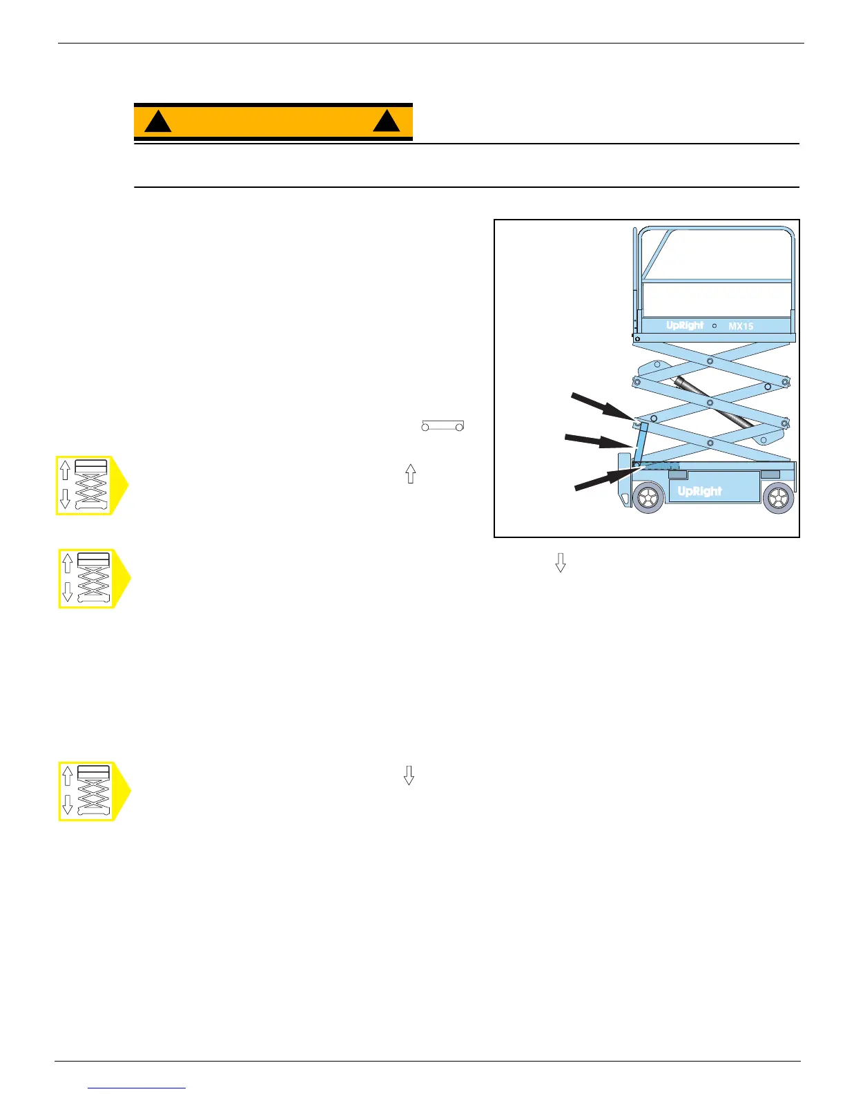 1. While holding the Brace, slowly raise the platform using the Chassis Controls until the end of the Scissor