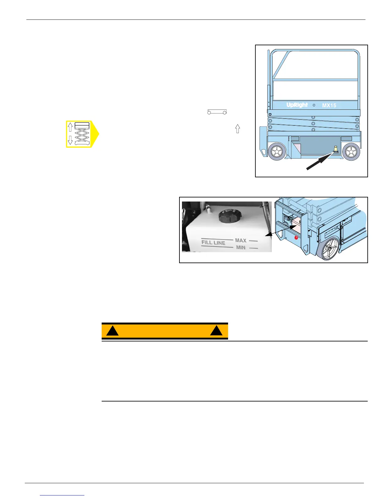 • Flüssigkeitsstand der Batterie täglich kontrollieren, insbesondere wenn die Arbeitsbühne