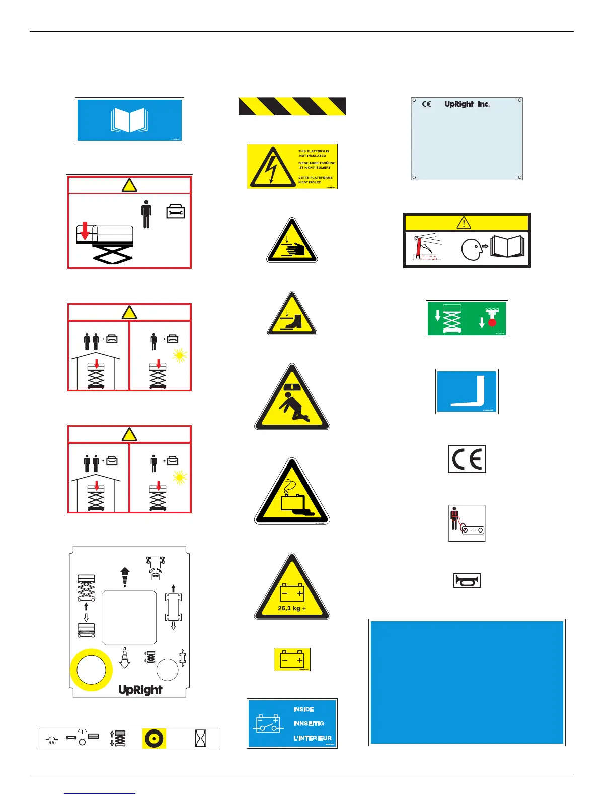 Die Arbeitsbühne darf nur in Betrieb genommen werden, wenn diese Schilder angebracht und gut lesbar sind. Die