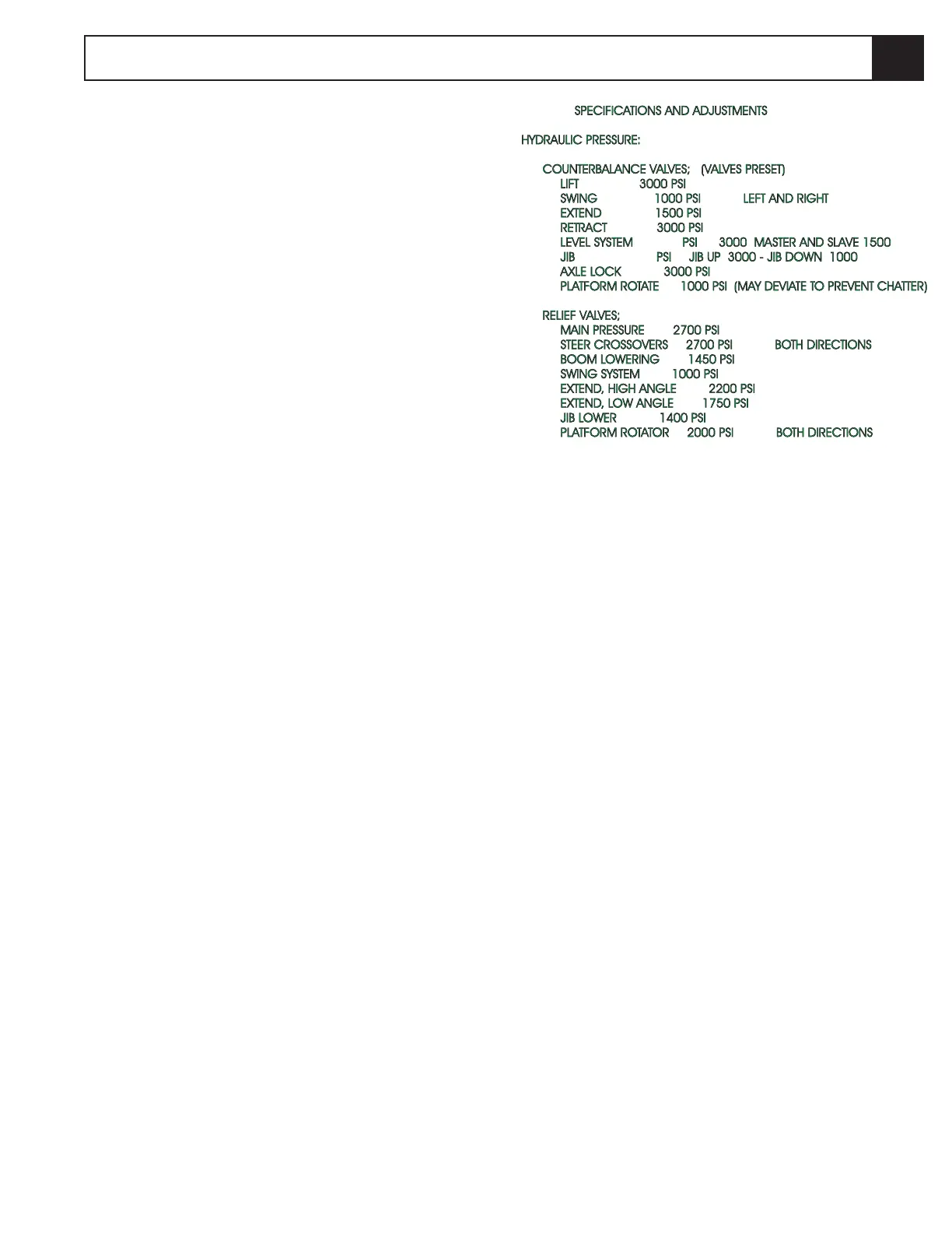Note: Check hydraulic pressures whenever the