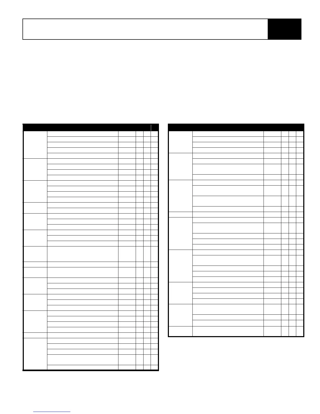 Preventative Maintenance Table Key
