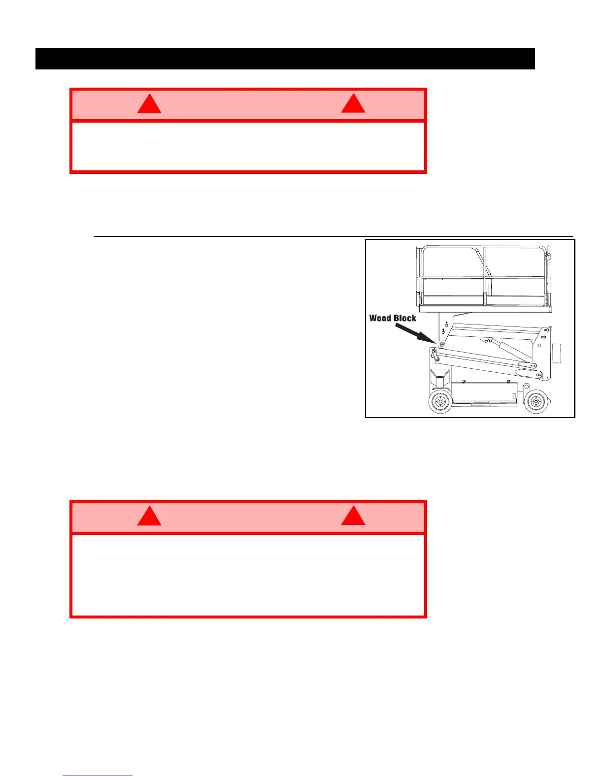 DO NOT block elevating assembly with a load on the platform.