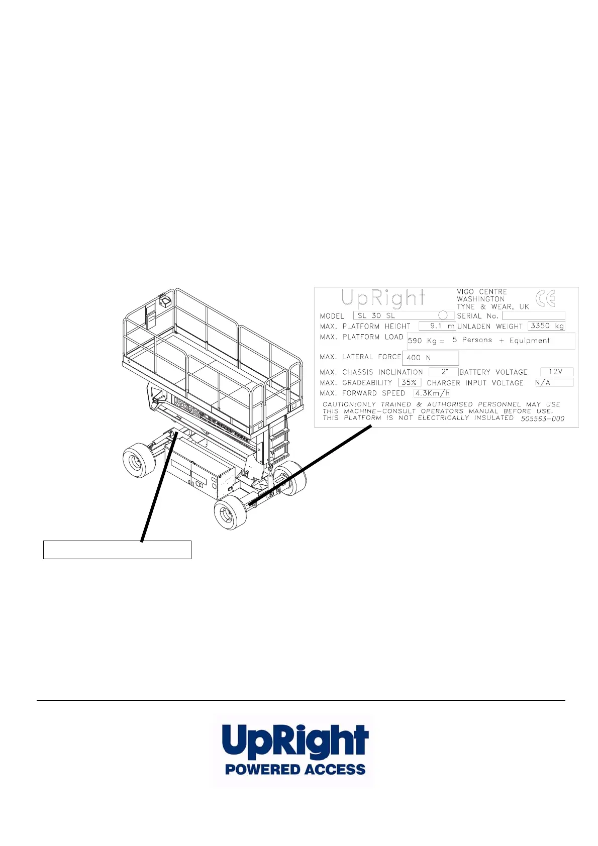 UpRight bezüglich Wartungs- oder Ersatzteilinformationen in Verbindung setzen. Sollte das Typenschild fehlen, finden Sie