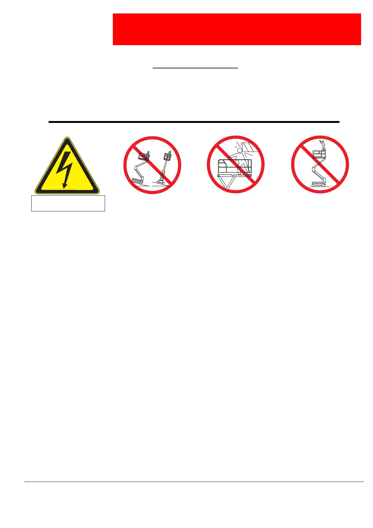 DIESE HOCHARBEITSBÜHNE IST NICHT ISOLIERT! Aus diesem Grund muss zwingend ein Sicherheitsabstand zu allen leitfähigen Teilen