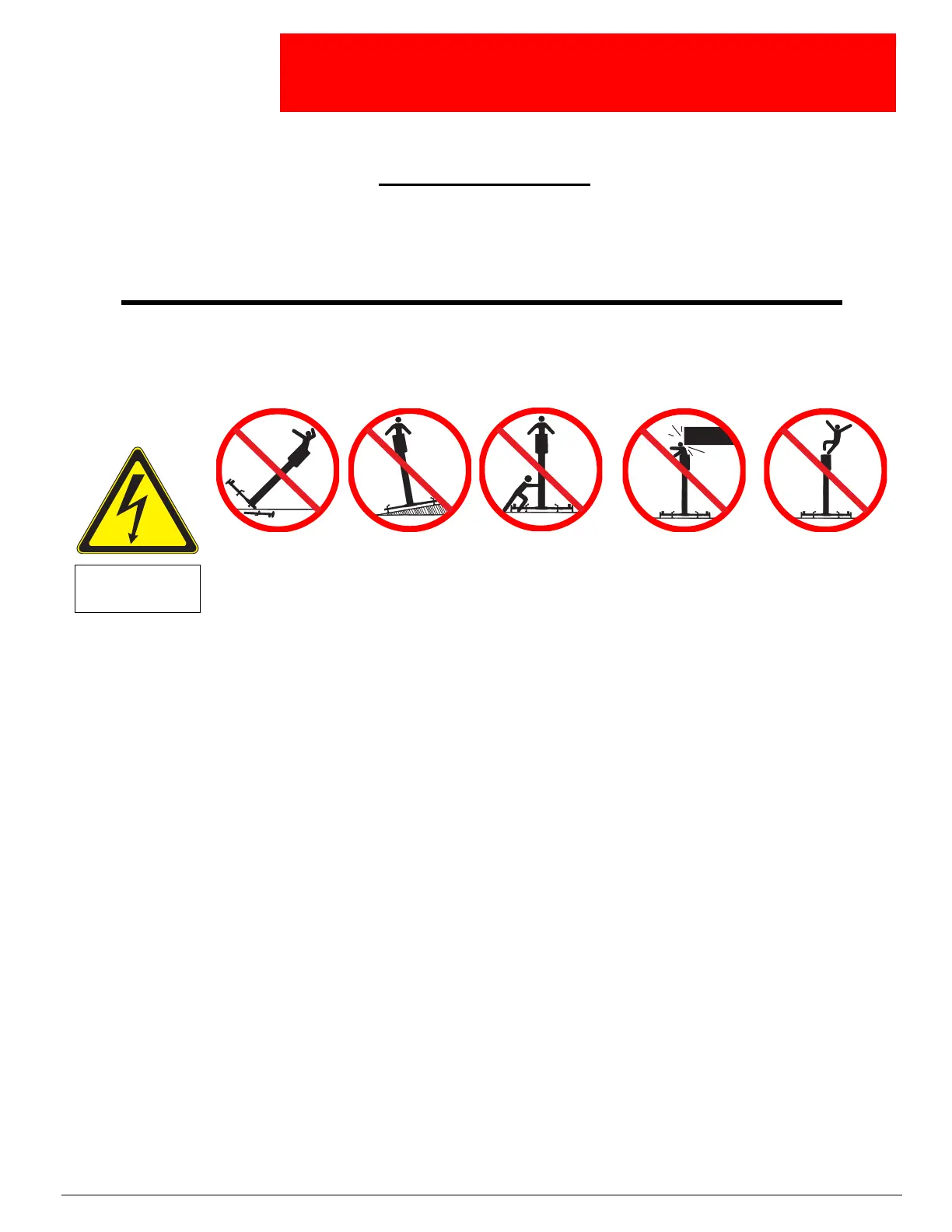 DIESE HOCHARBEITSBÜHNE IST NICHT ISOLIERT! Aus diesem Grund ist es dringend erforderlich, von stromführenden Teilen elektrischer