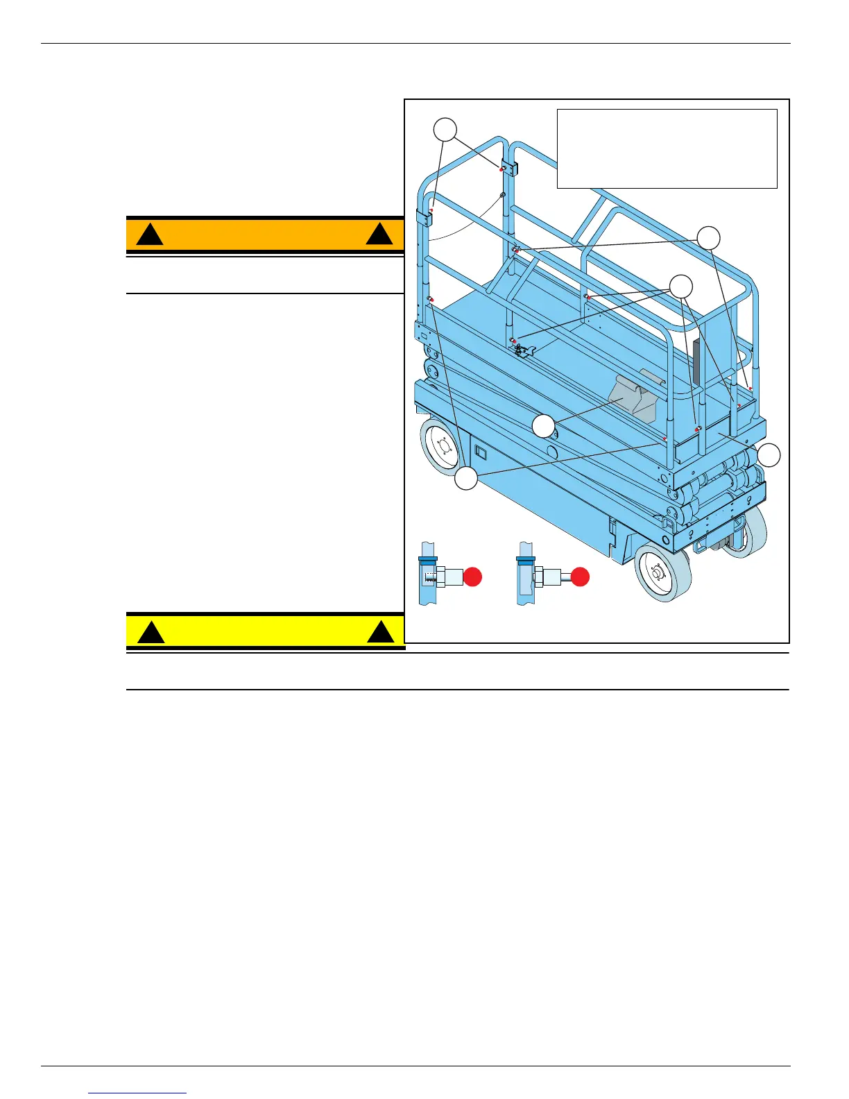• Pull up on the platform extension guardrail and raise it until all the retaining pins engage.