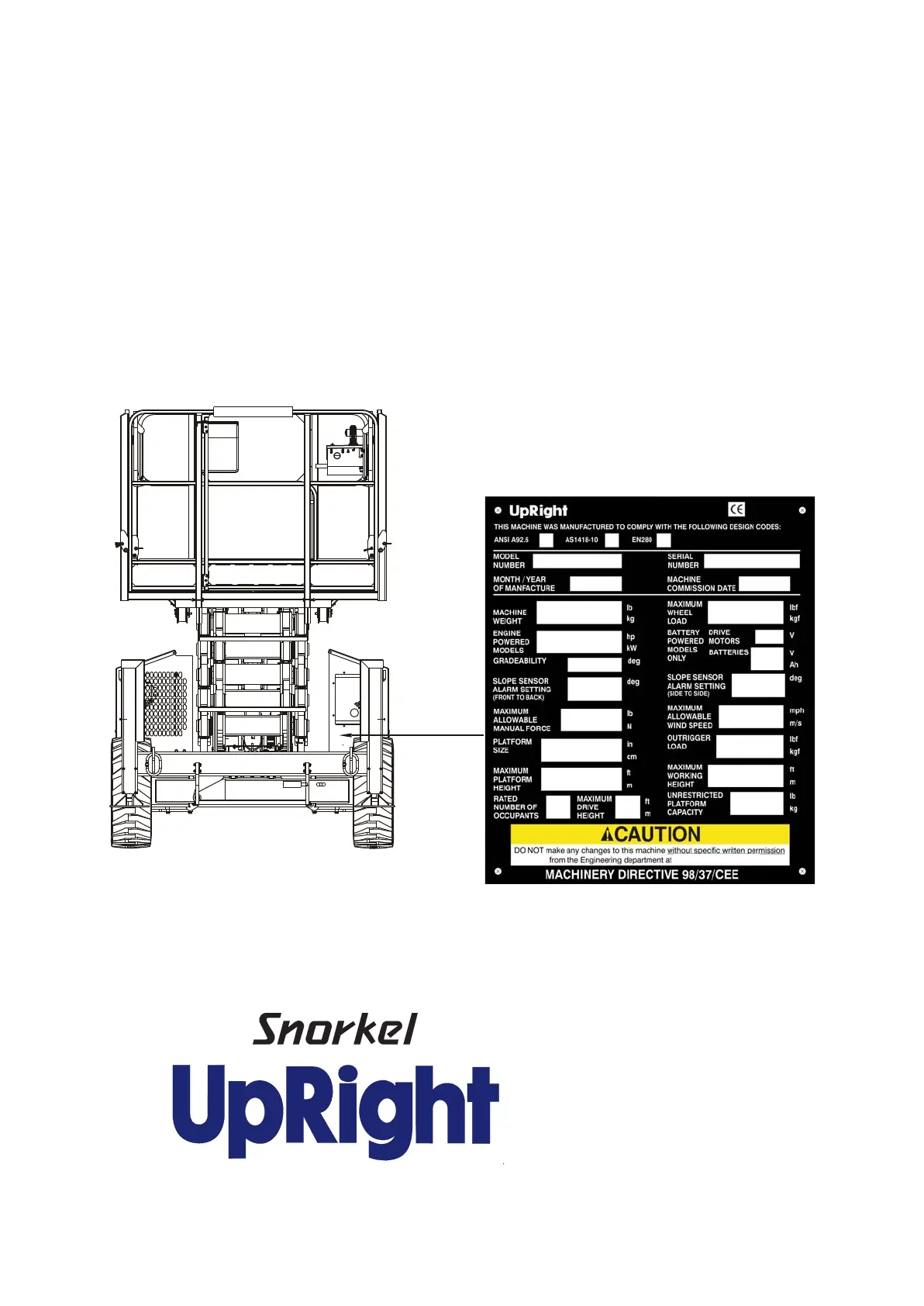 Therefore any reference to the Snorkel SR Series also applies to the UpRight X-27-33-RT/BE .