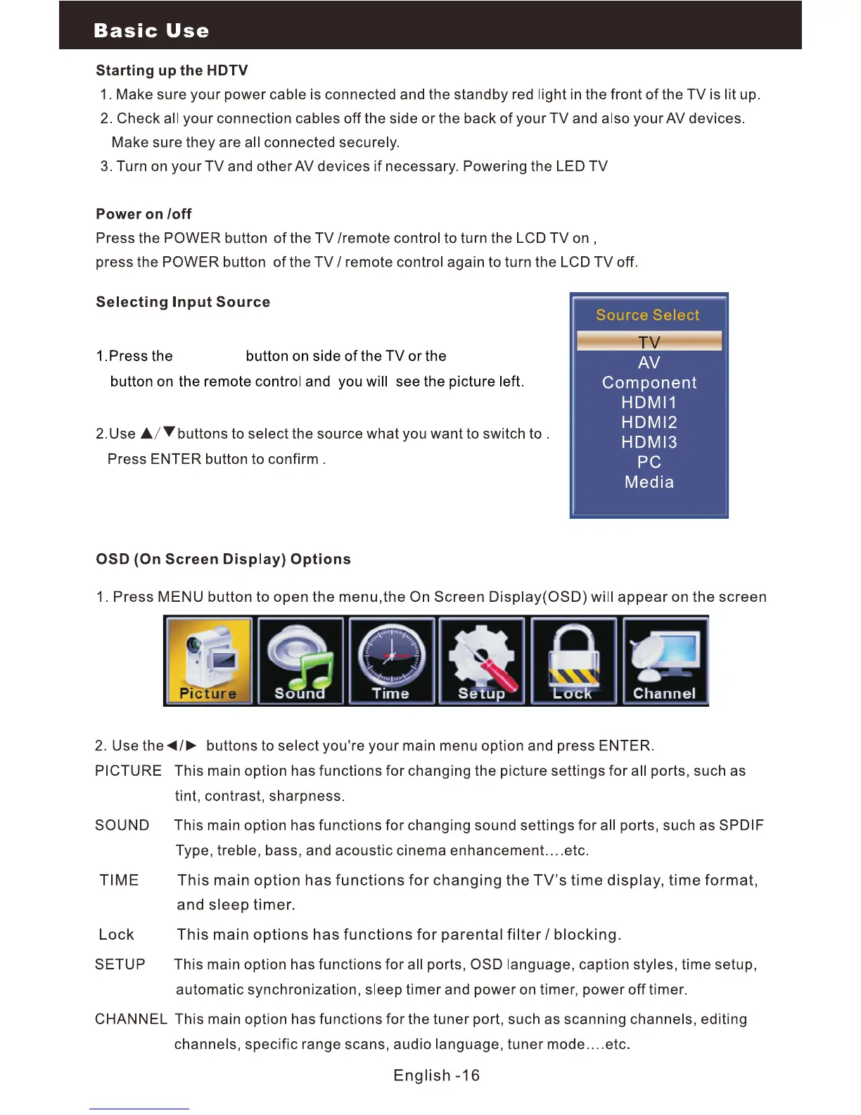 Upstar P32EE7 - Basic Operation; Starting Up and Connecting Cables; Selecting Input Source; Navigating the OSD Menu