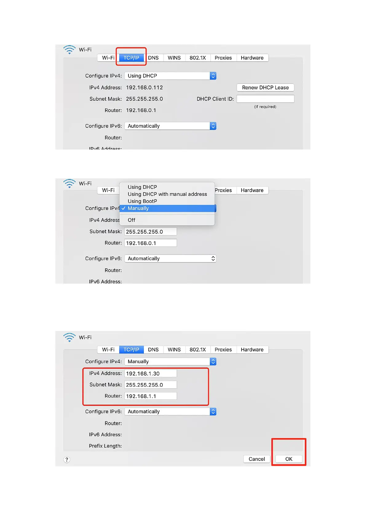 Step 7. Change the IP address of MAC, and click ''OK''.