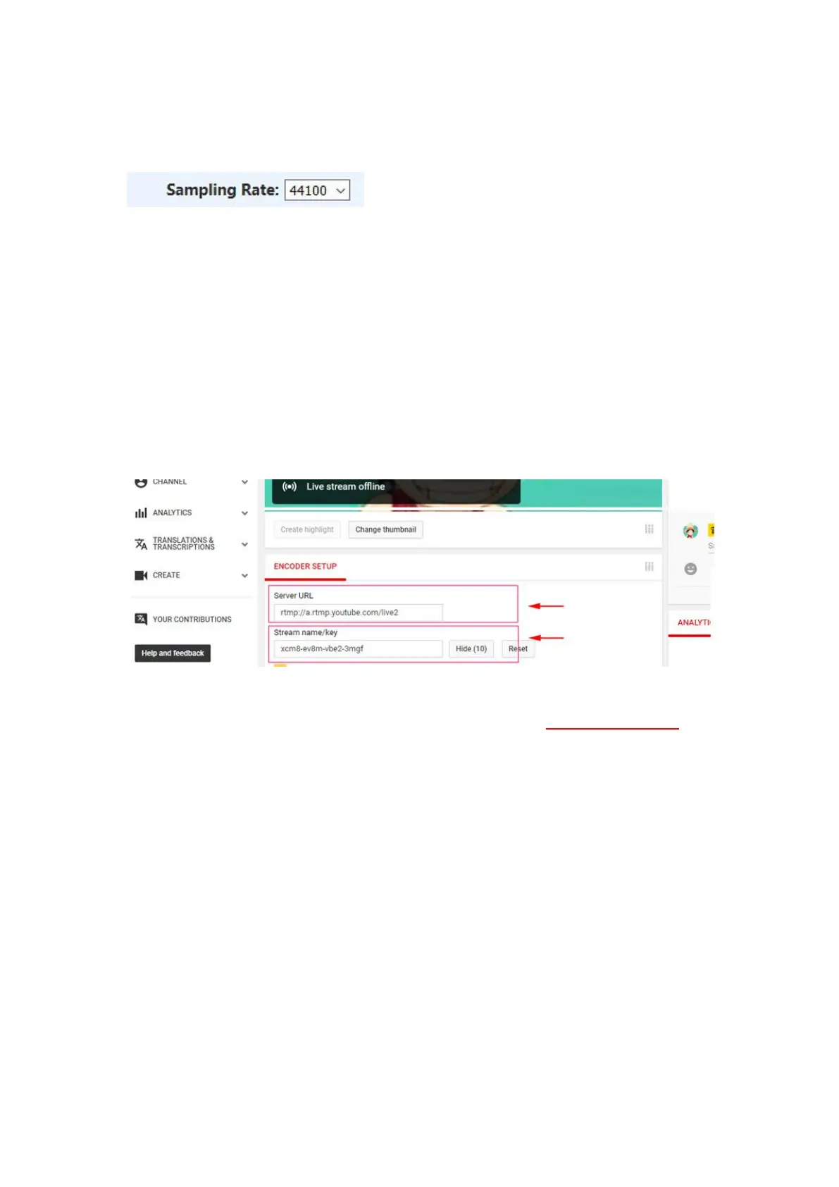 following RTMP information of YouTube into the setting of ''RTMP(S) /RTSP PUSH URL''.