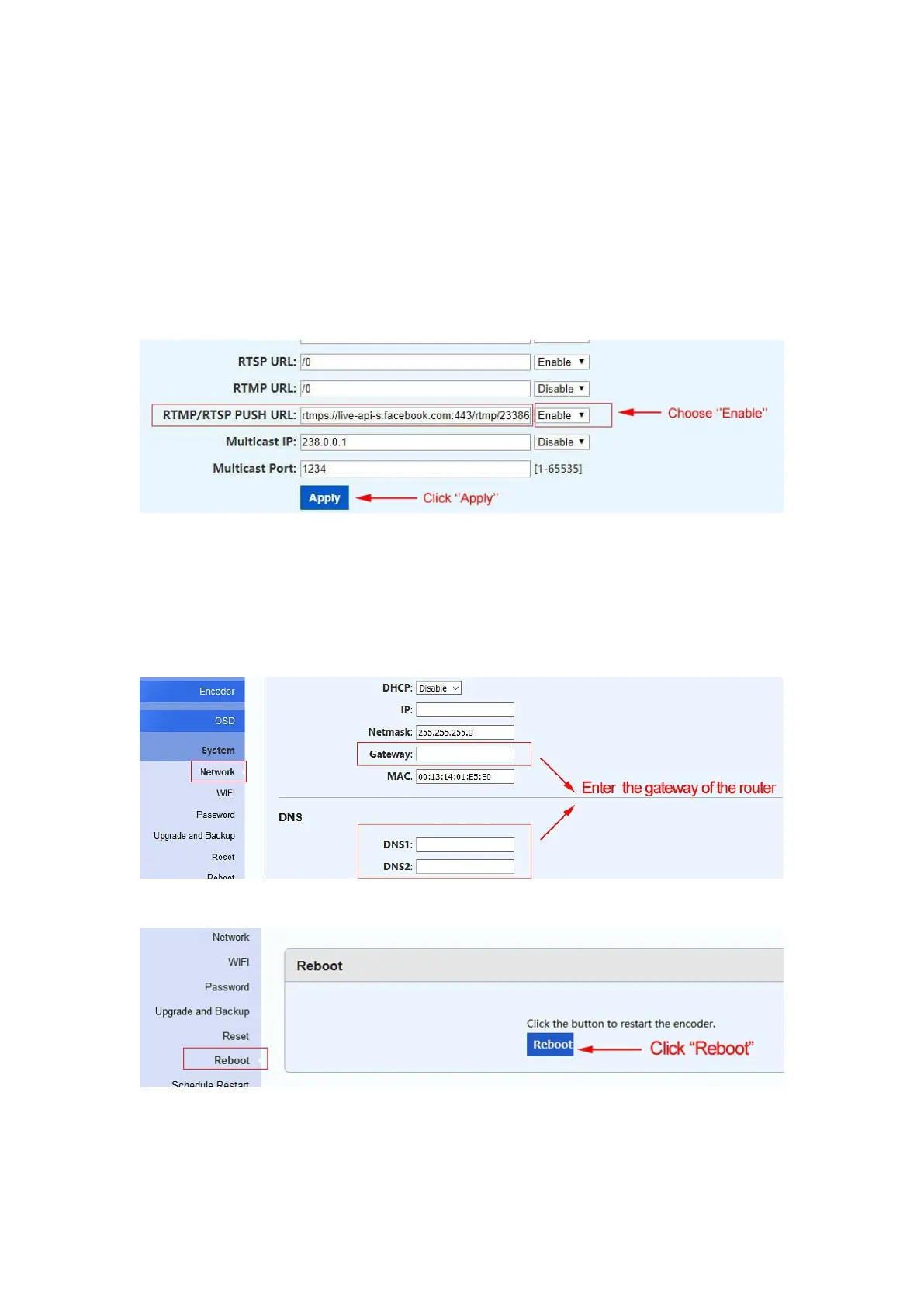 Step 6. Click ''Reboot'' to restart the video encoder