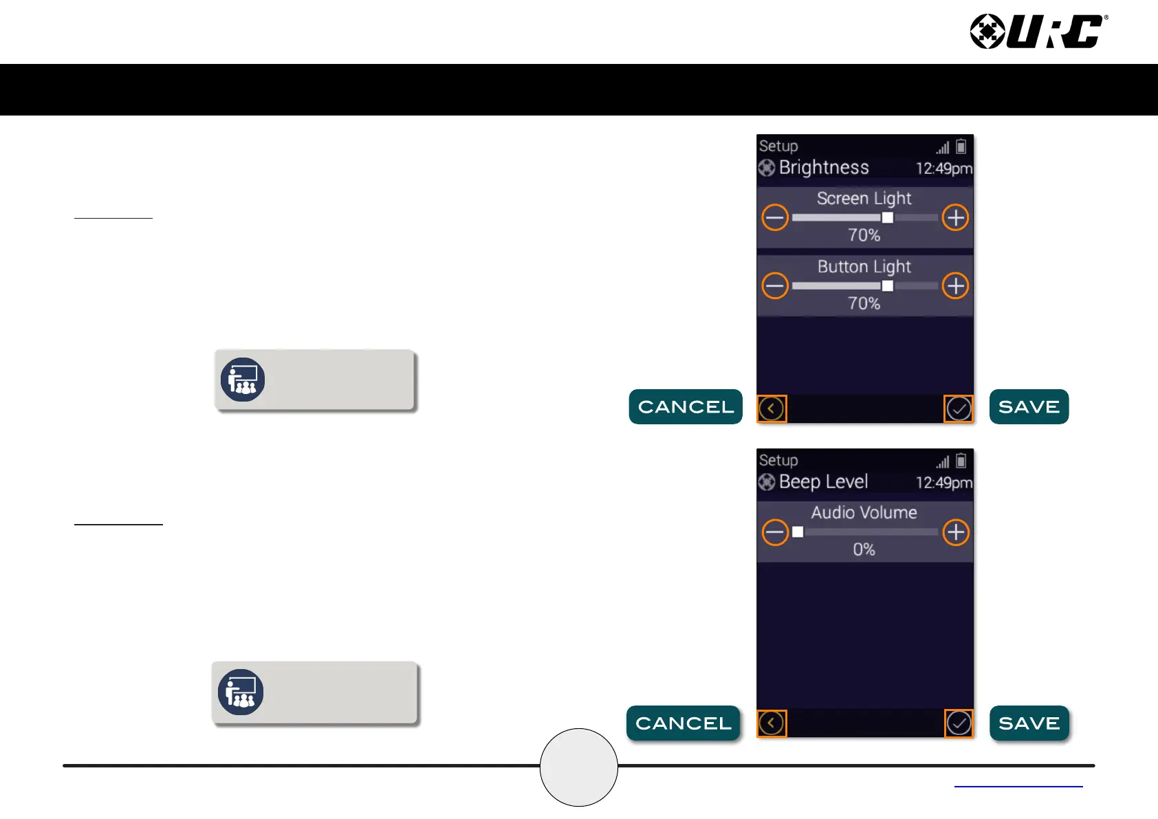 buttons to increase or decrease the brightness level.