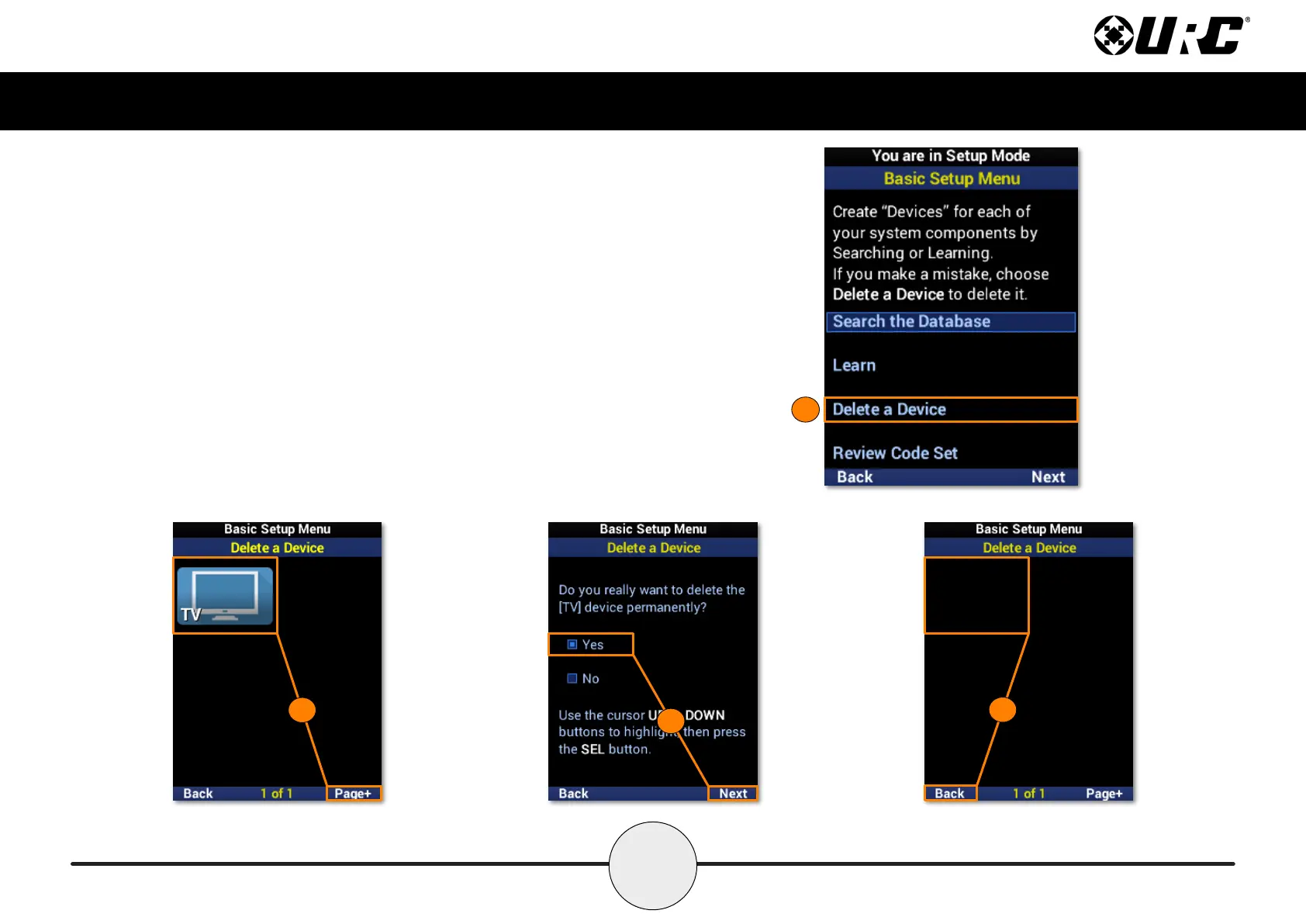 1. Highlight Delete a Device and select Next.