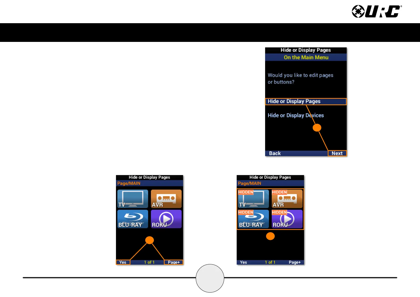 2. Select a page to hide and select Yes to conrm. Use Page+ to move