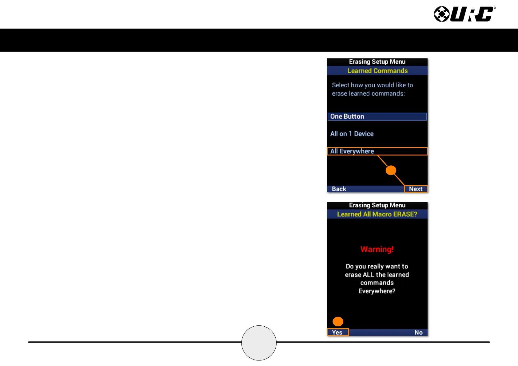 2. Select Yes to conrm the removal of all learned commands on the remote.