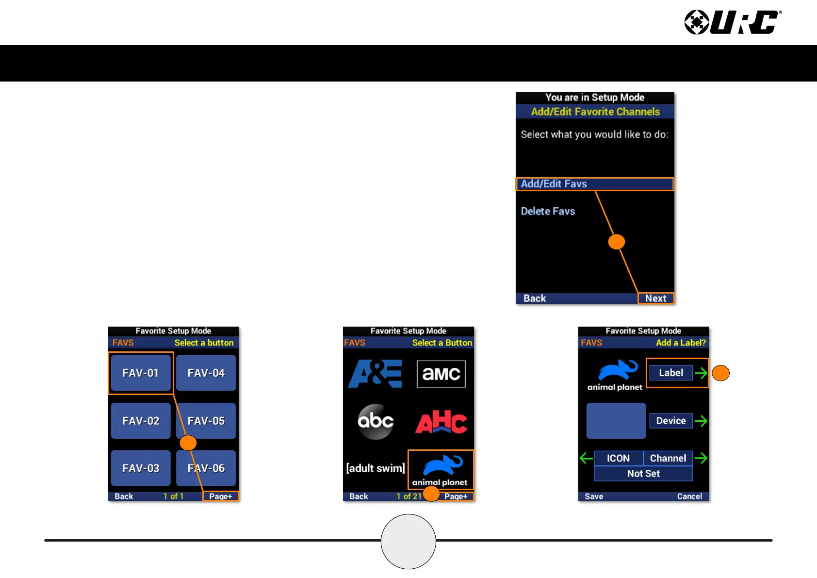 2. Select a location on the UI for the new favorite channel. Use the Page+