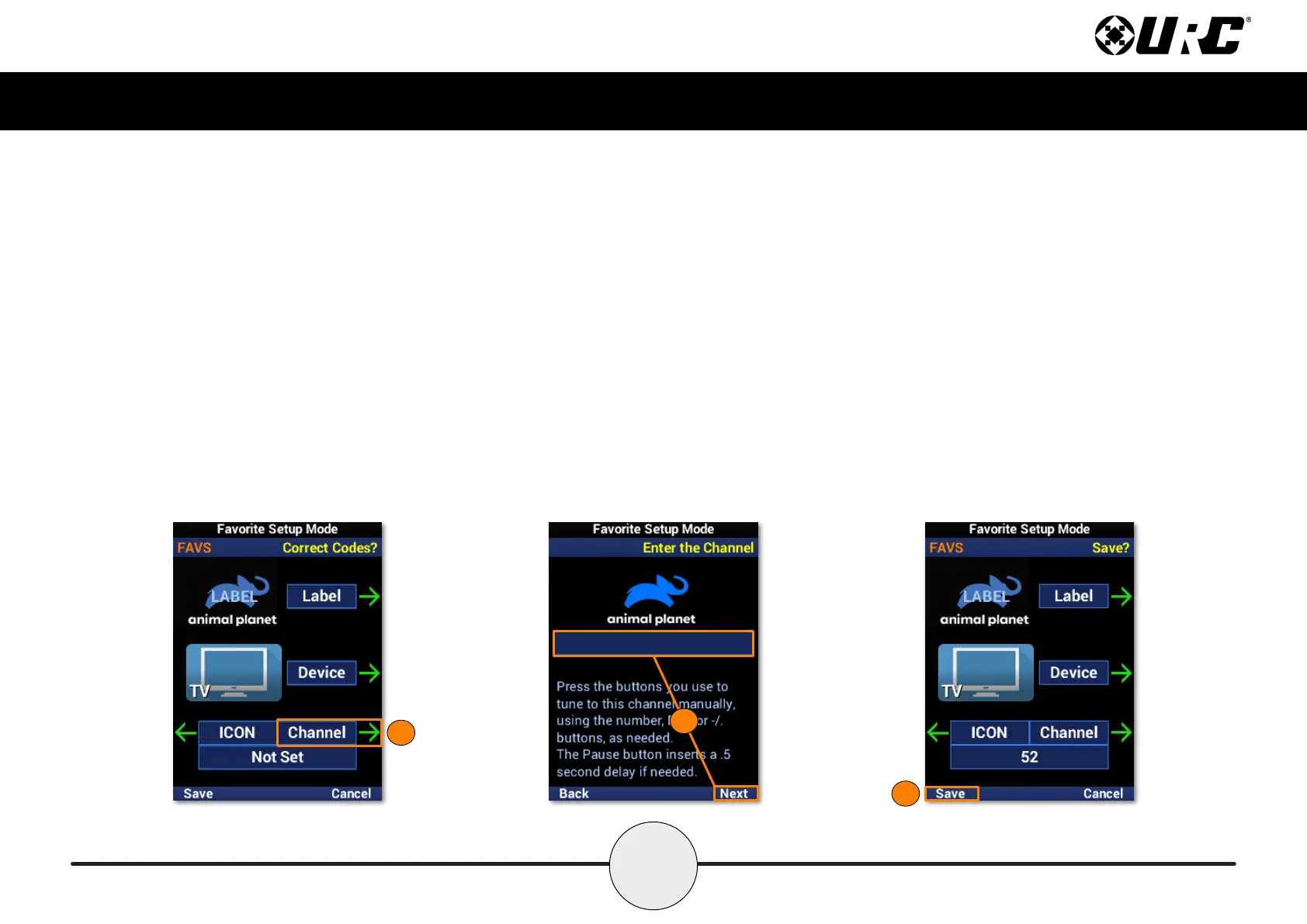 9. Using the number pad, enter the channel numbers and select Next.