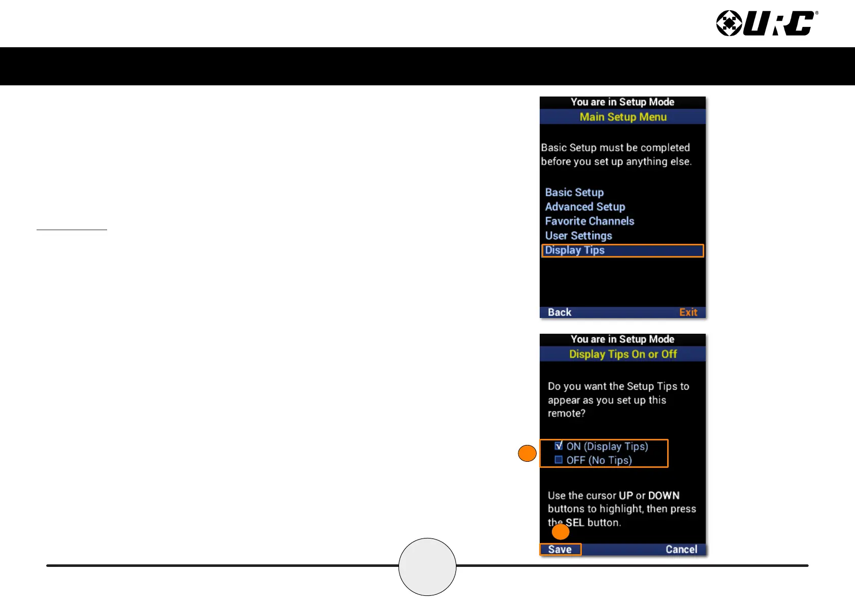 conguration process. These tips may be disabled, but URC recommends rst-time
