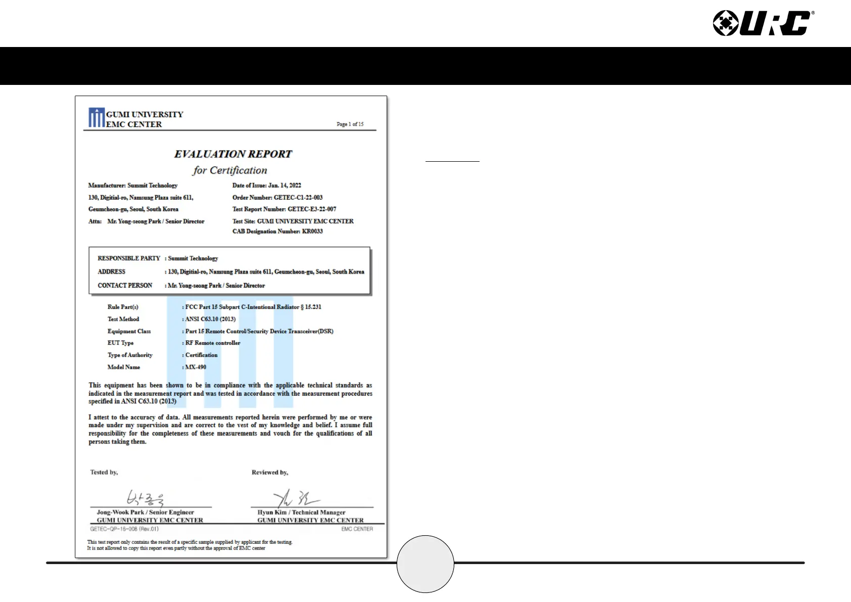 URC MX-490